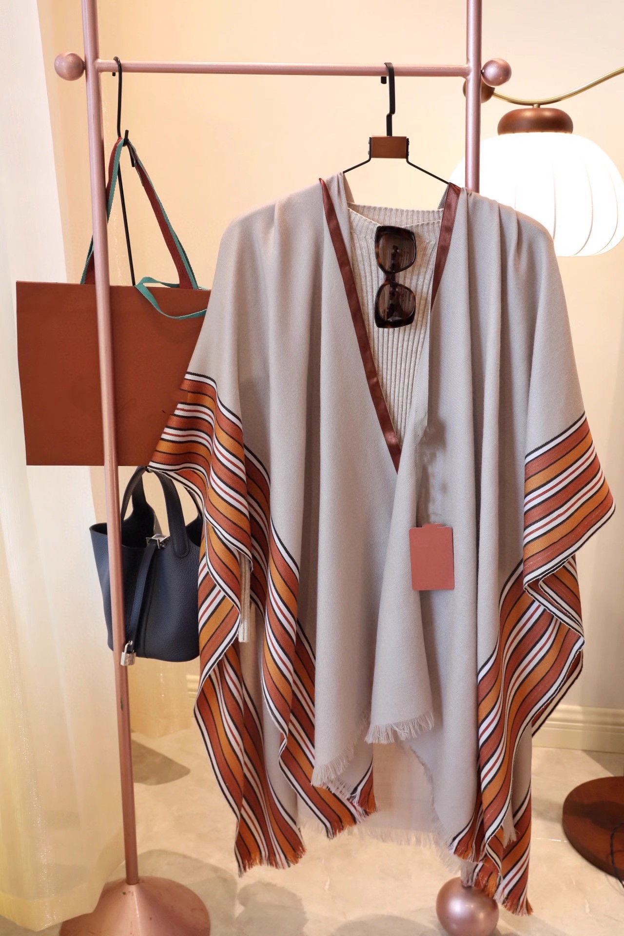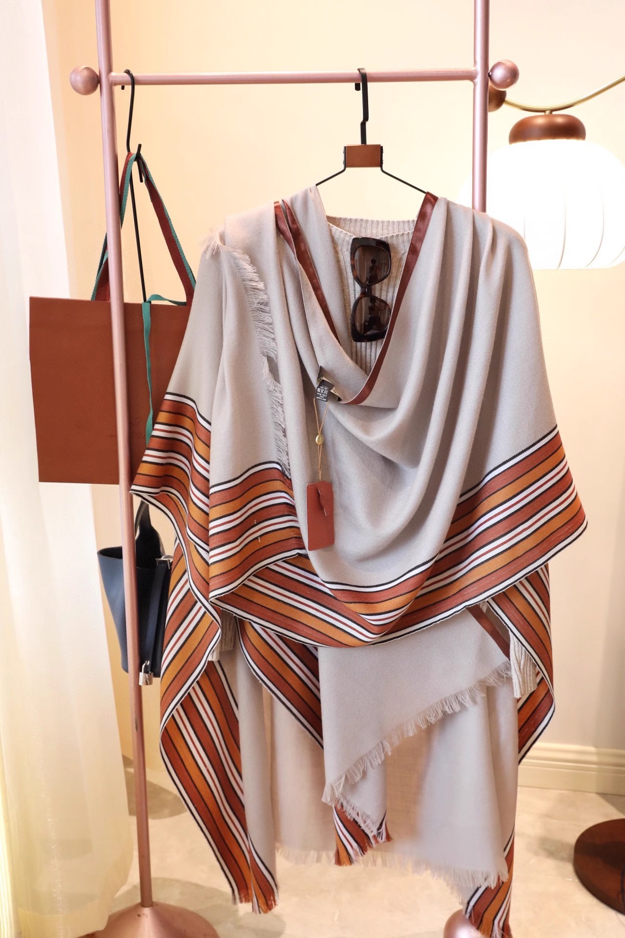 LP 대형 90% 초극세 신생아 울 10 캐시미어 숄 홈 레저 담요 실크 스트라이프 케이프