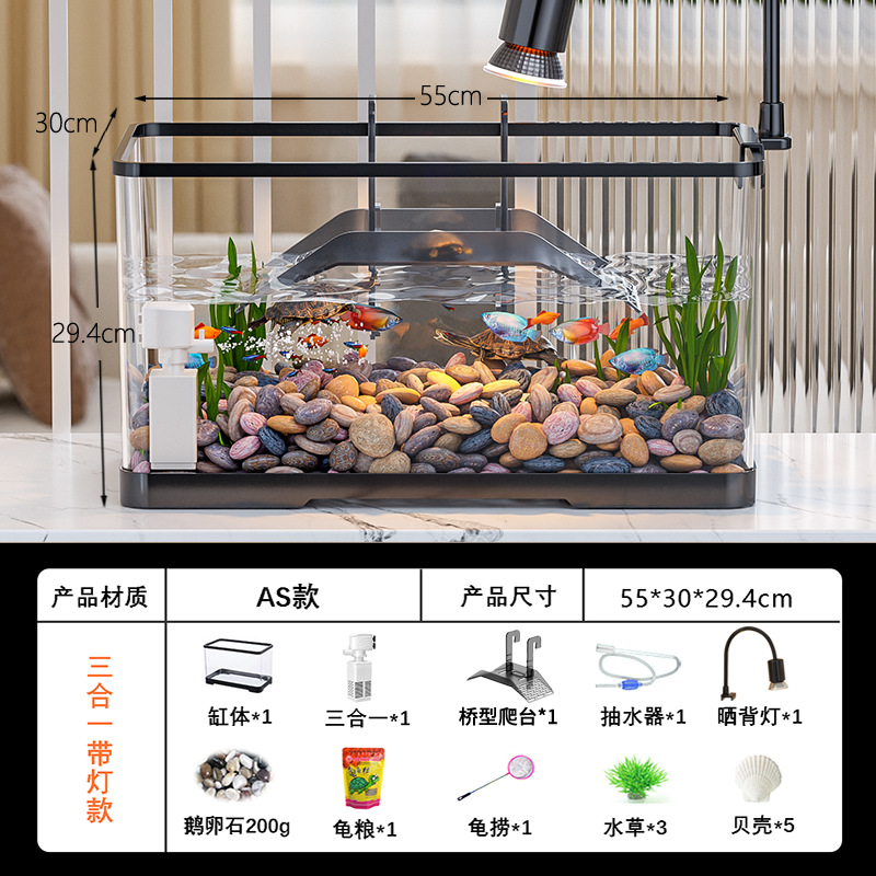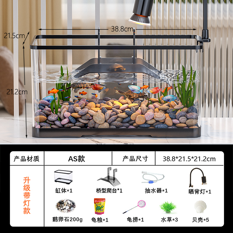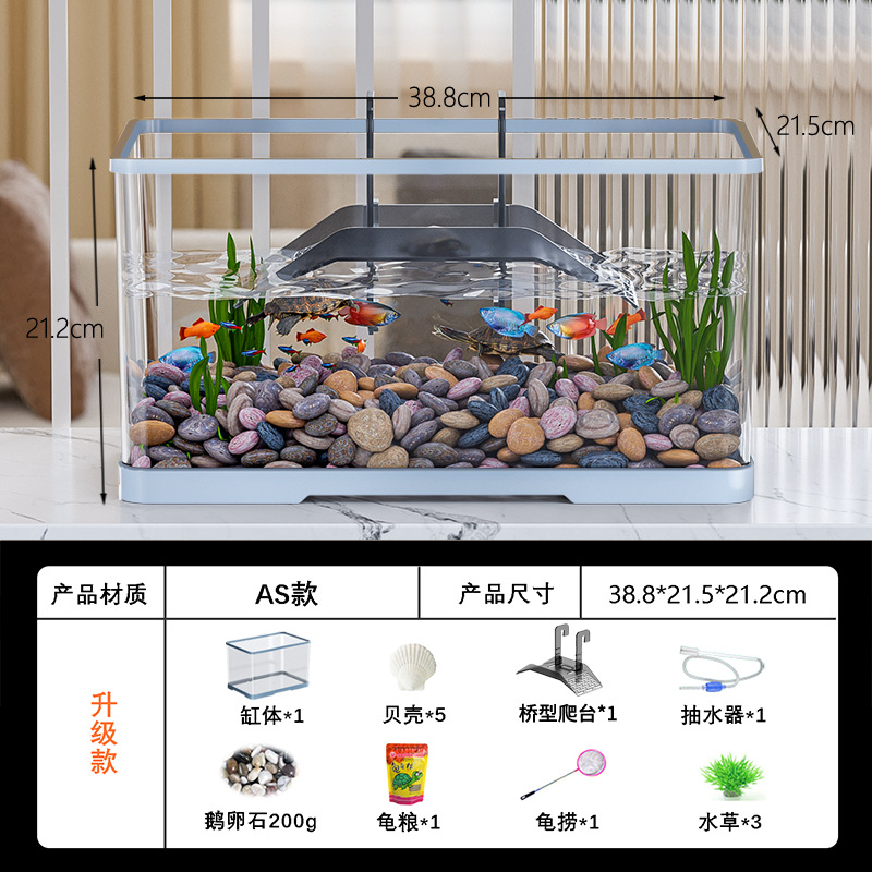 넓은 법원 물고기 거북 혼합 탱크 데스크탑 어항 거실 전용 탱크 작은 물고기 탱크 수족관 금붕어 얼룩말 공작 어항스토어 가기