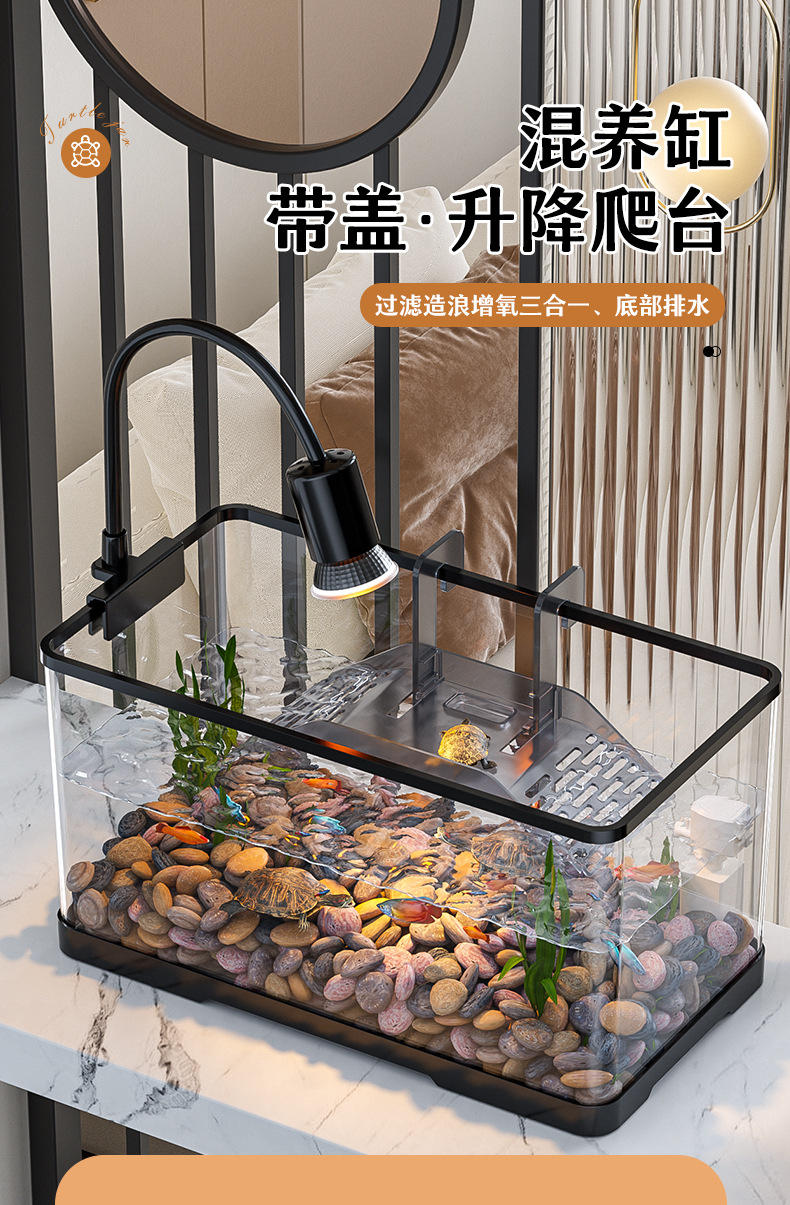 넓은 법원 물고기 거북 혼합 탱크 데스크탑 어항 거실 전용 탱크 작은 물고기 탱크 수족관 금붕어 얼룩말 공작 어항