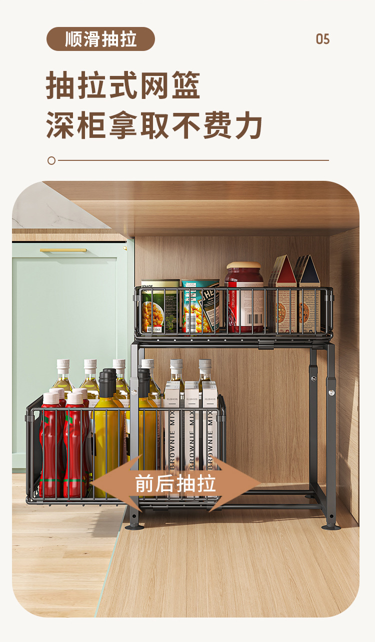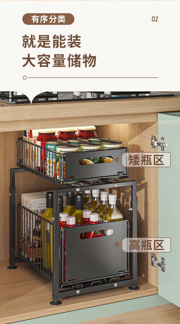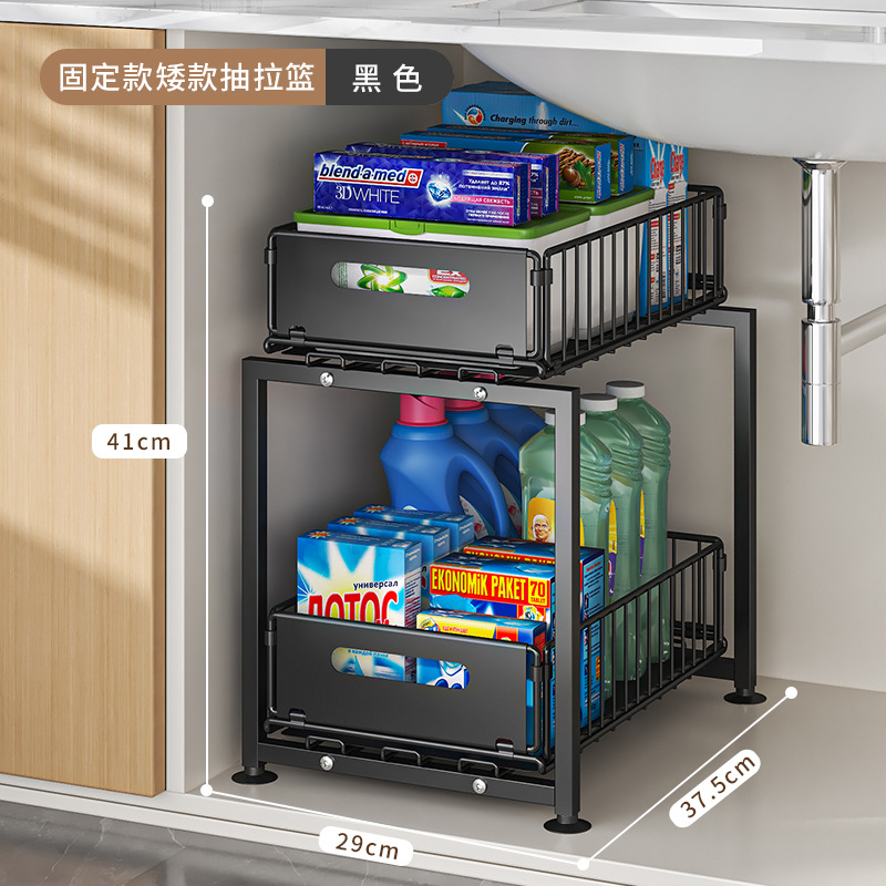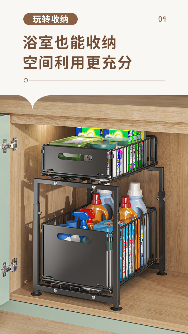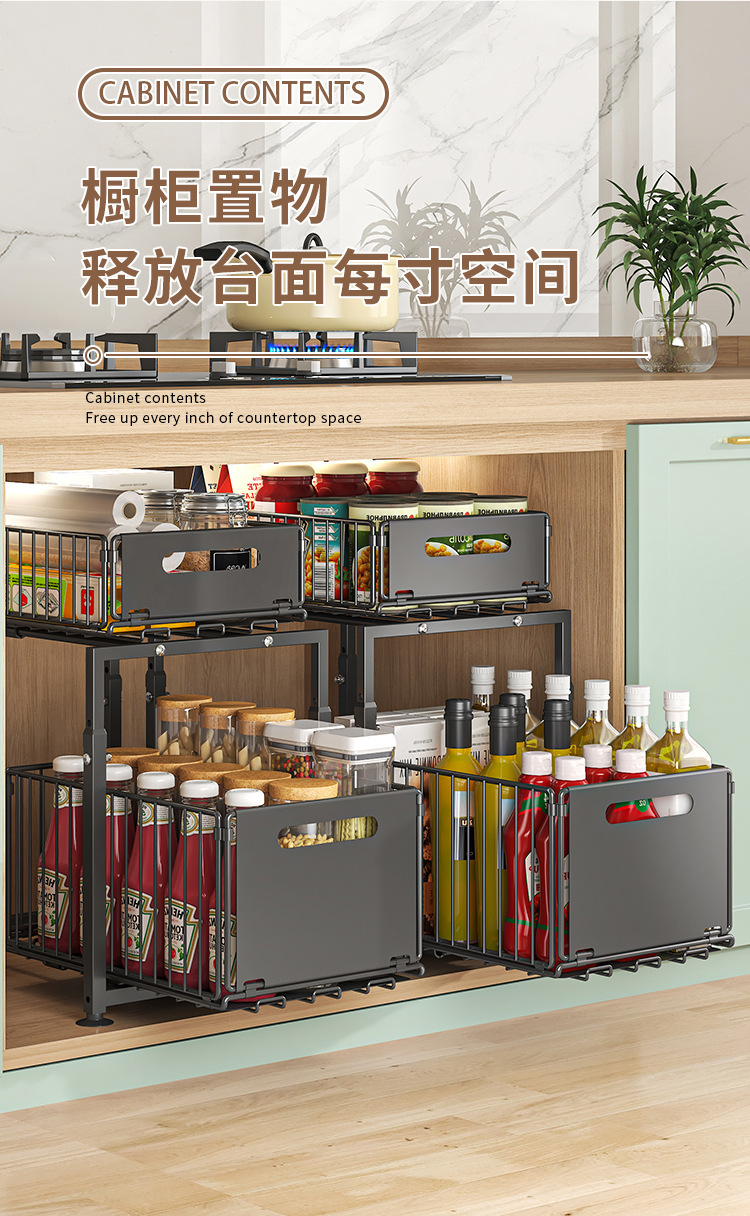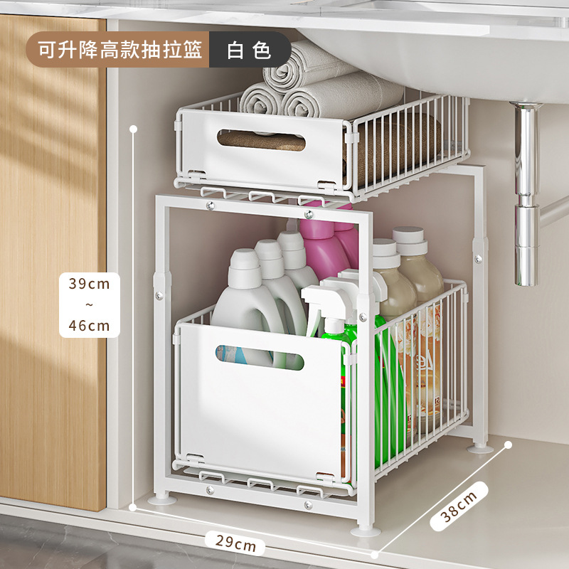 주방 풀아웃 스토리지 랙 캐비닛 레이어드 랙 다양한 아티팩트 완벽한 더블 레이어 싱크 탱크 캐비닛 스토리지 바구니