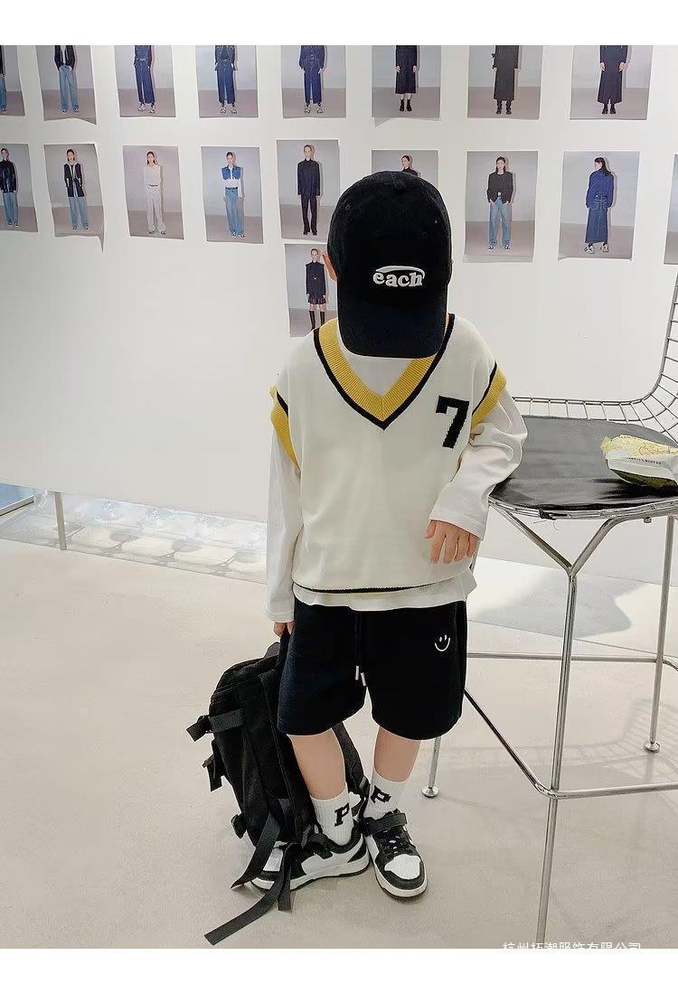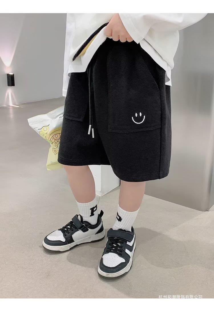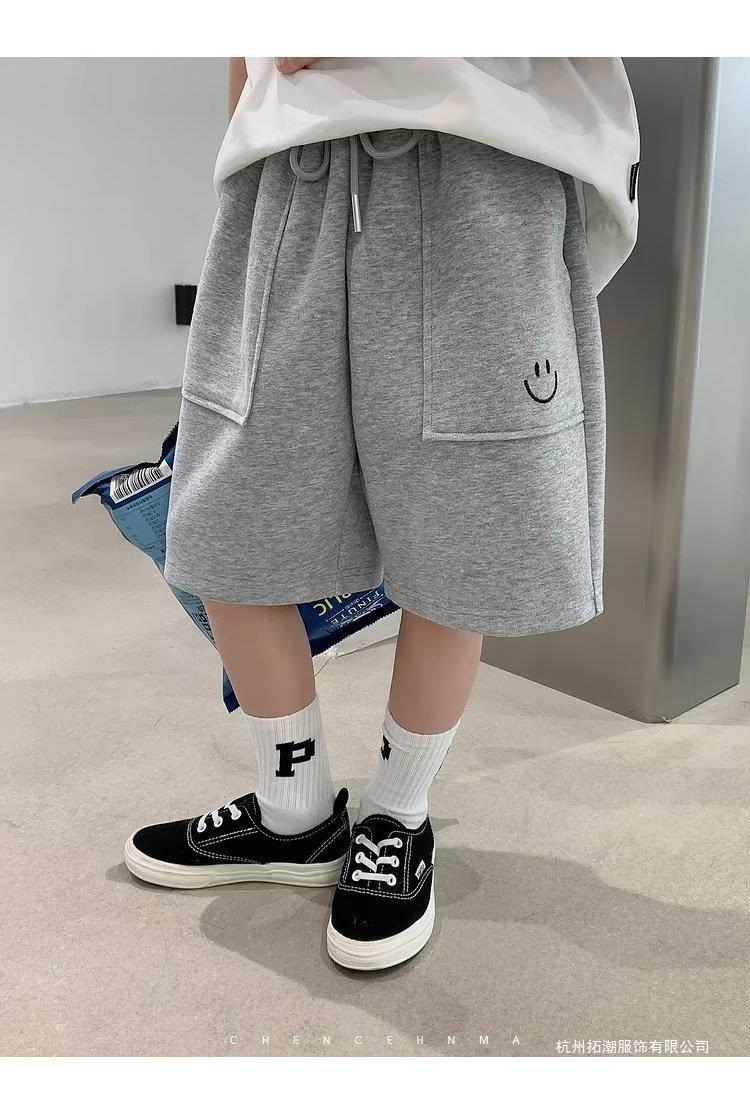 2023 새로운 도착 소년 바지 봄과 여름 어린이 스마일리 얼굴 자수 올 매치 캐주얼 반바지 잘 생긴 느슨한 반바지