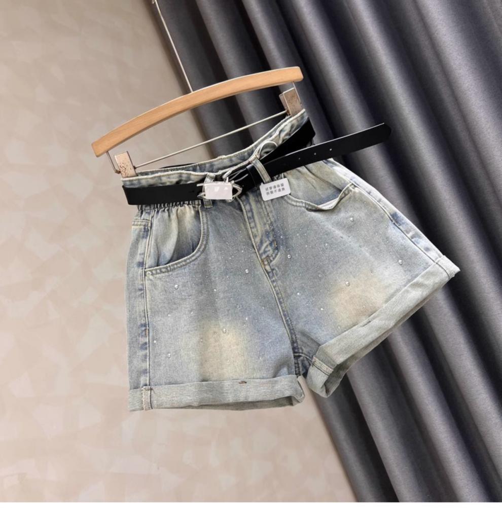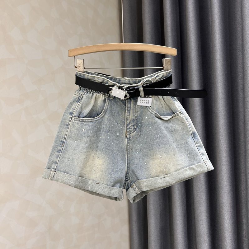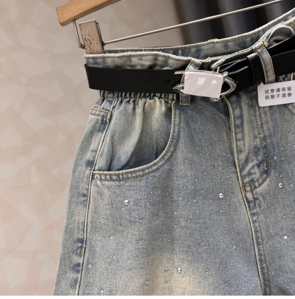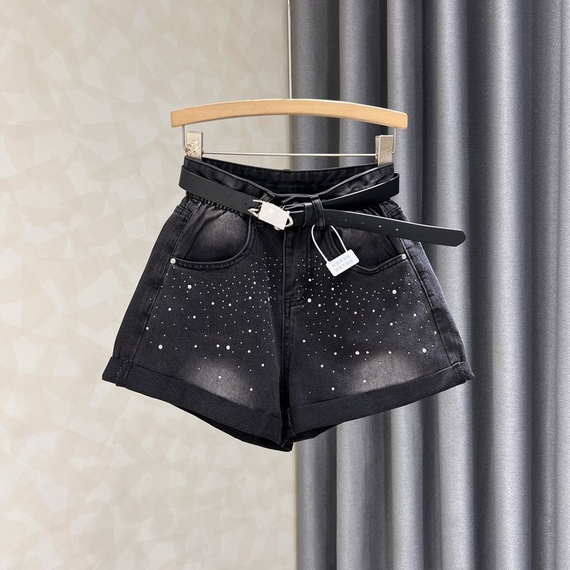 블랙 그레이 데님 반바지 여성 여름 새로운 서양 스타일 핫 드릴링 슬림 레트로 높은 허리 컬링 넓은 다리 바지 핫 트렌디 한 바지스토어 가기