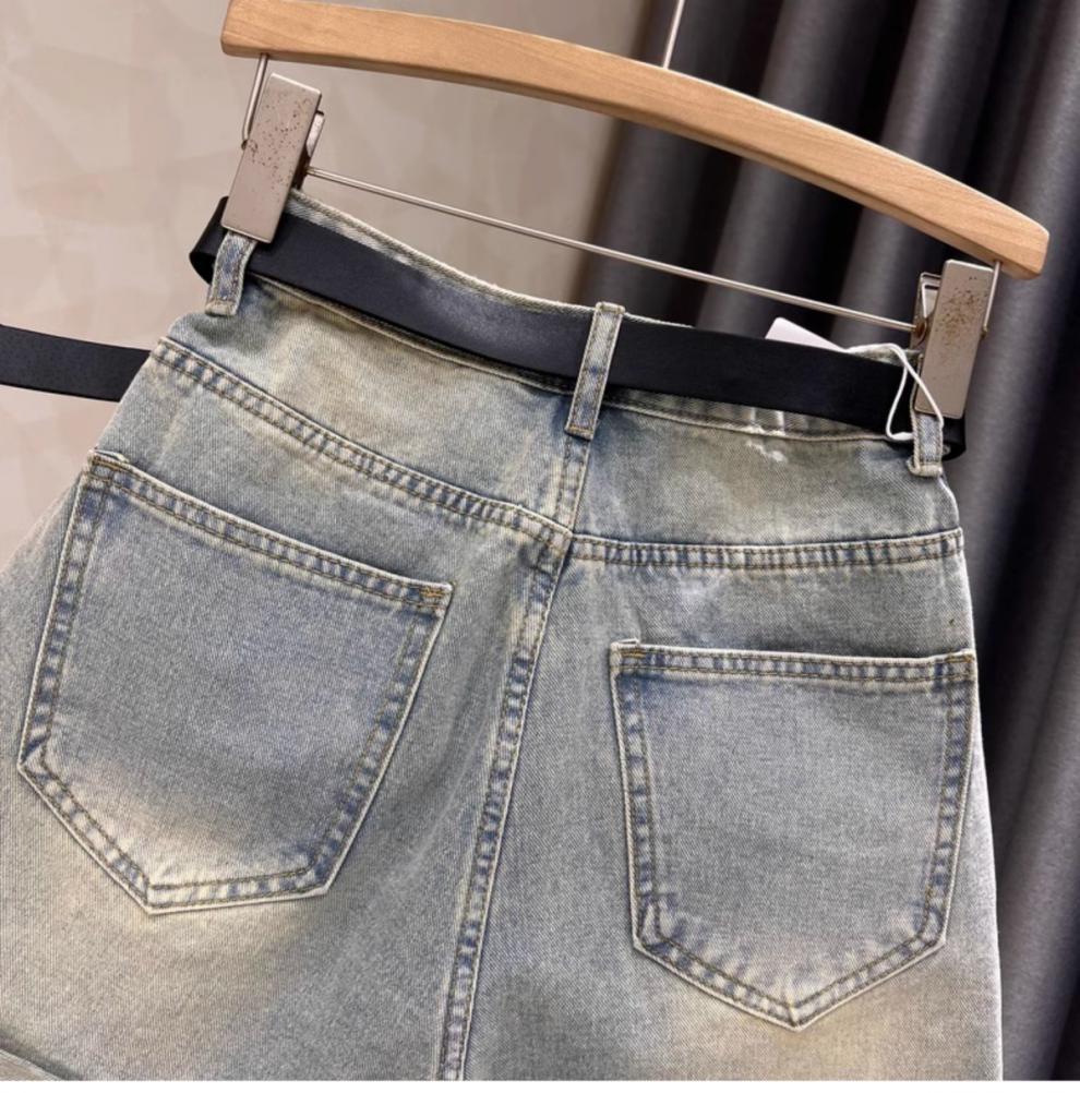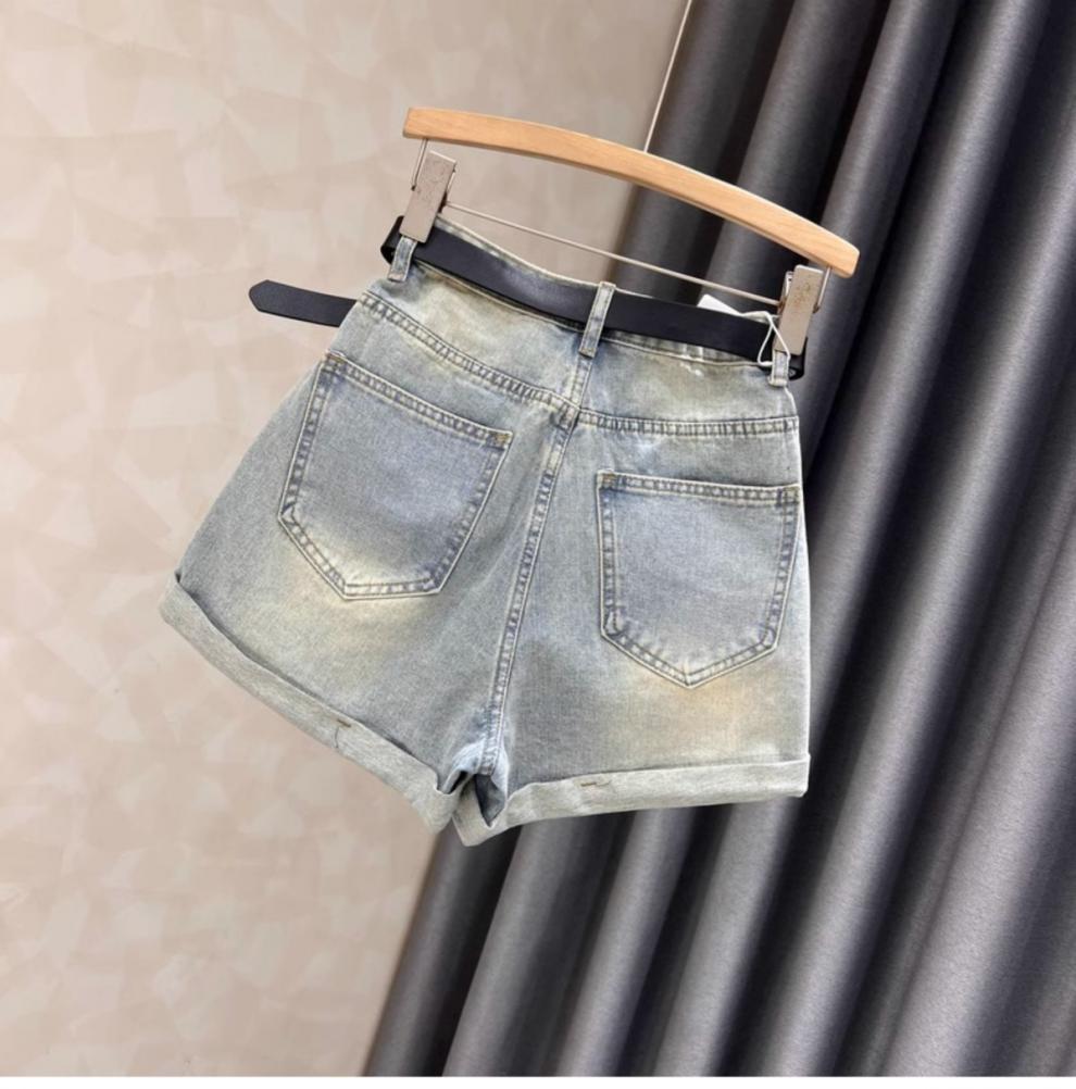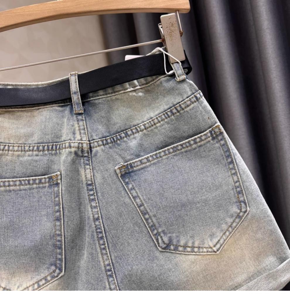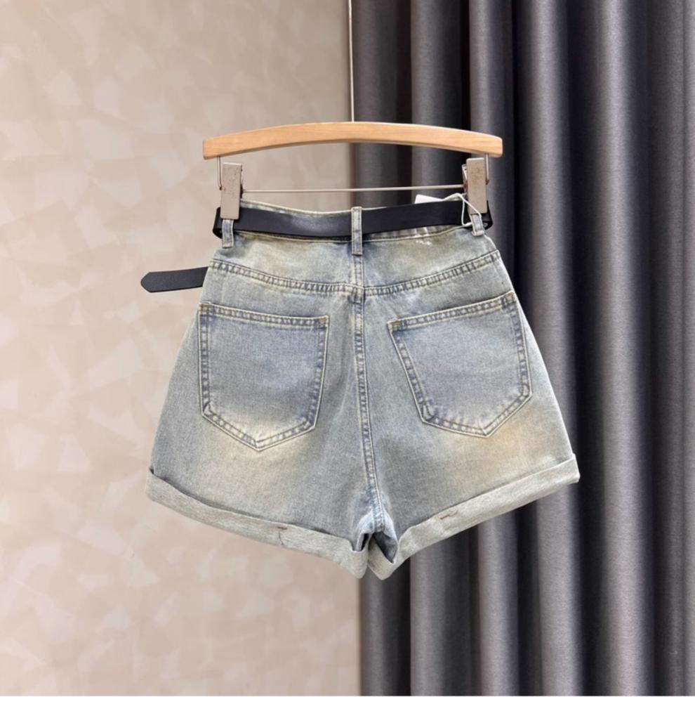 블랙 그레이 데님 반바지 여성 여름 새로운 서양 스타일 핫 드릴링 슬림 레트로 높은 허리 컬링 넓은 다리 바지 핫 트렌디 한 바지스토어 가기