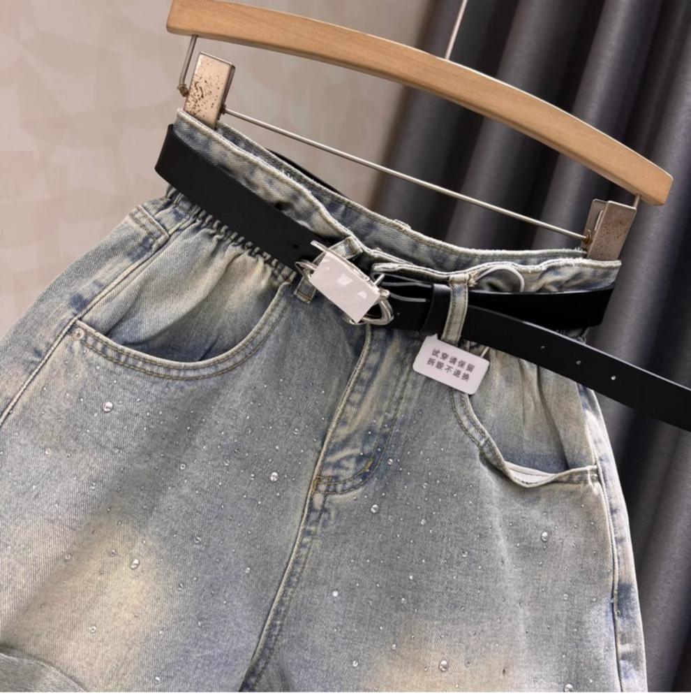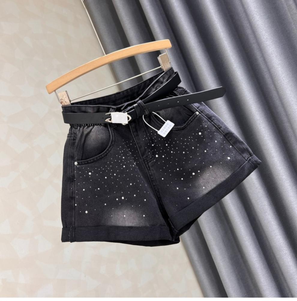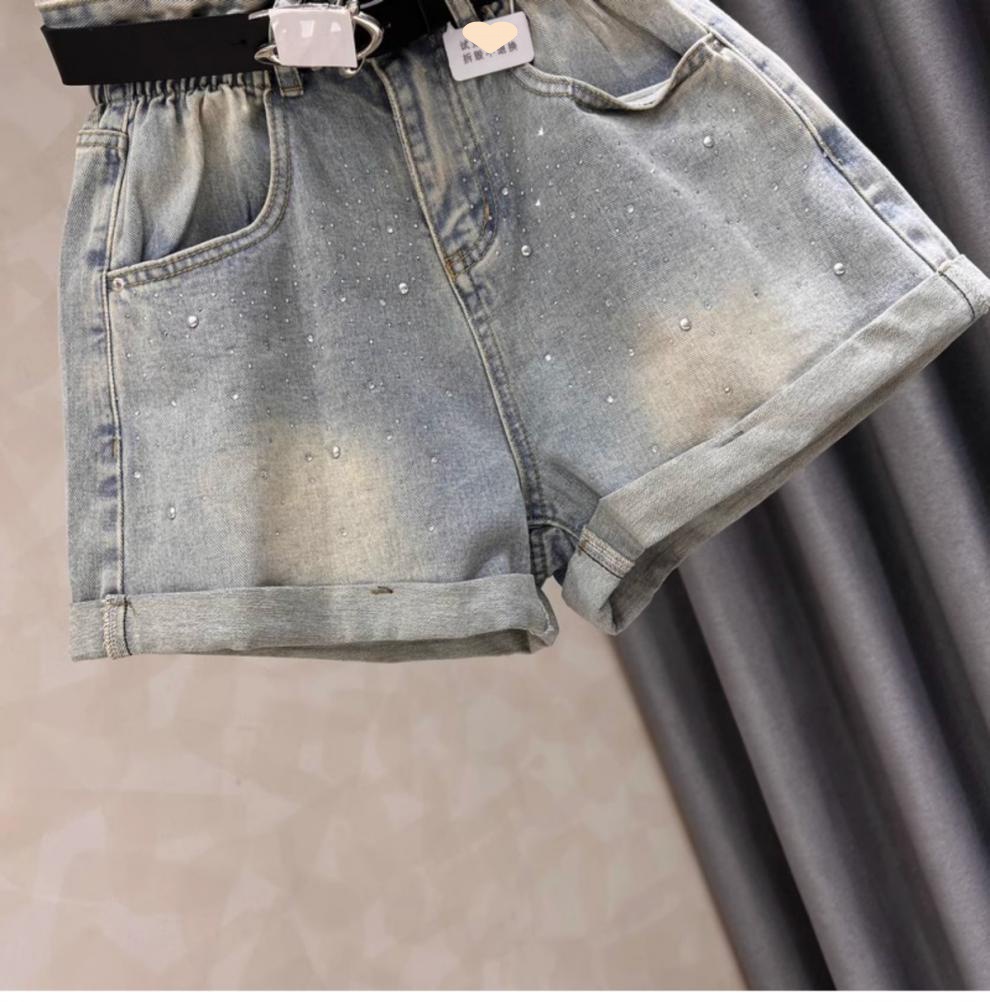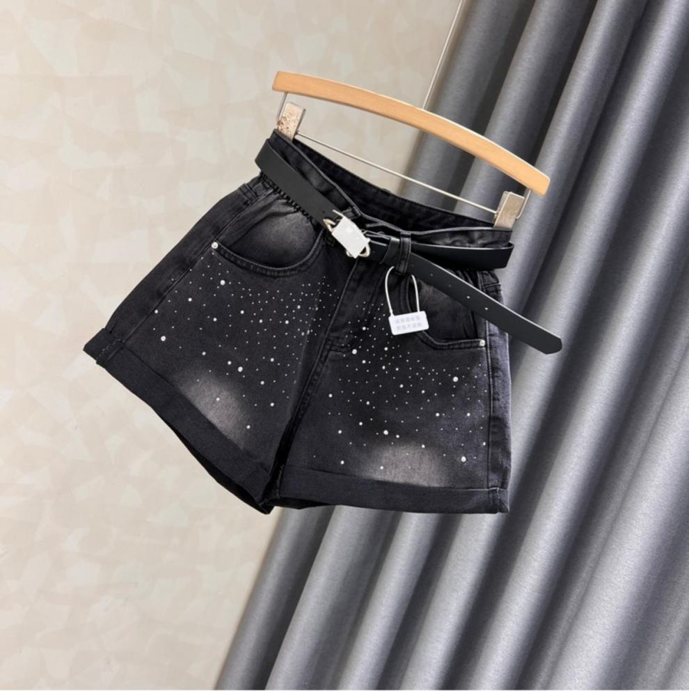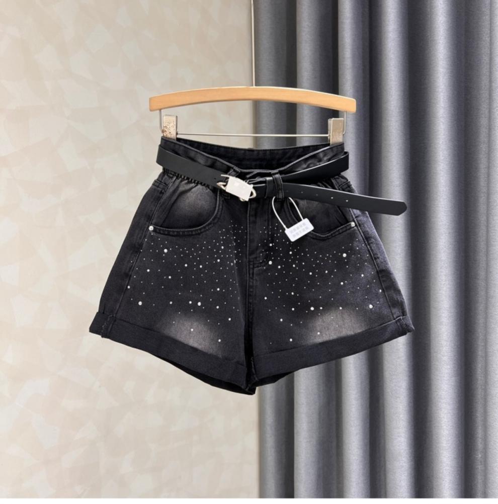 블랙 그레이 데님 반바지 여성 여름 새로운 서양 스타일 핫 드릴링 슬림 레트로 높은 허리 컬링 넓은 다리 바지 핫 트렌디 한 바지