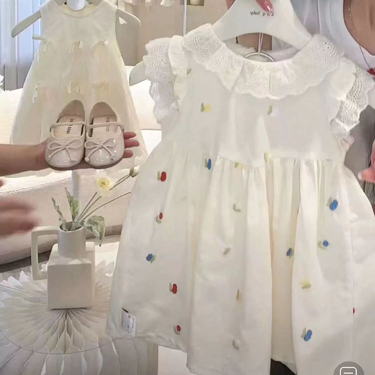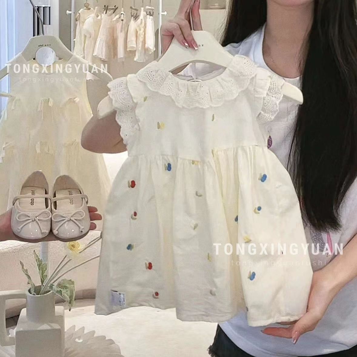 어린이 원피스 여름 새 꽃 자수 여자 치마 꽃 버드 민소매 소녀 세련된 공주 원피스스토어 가기