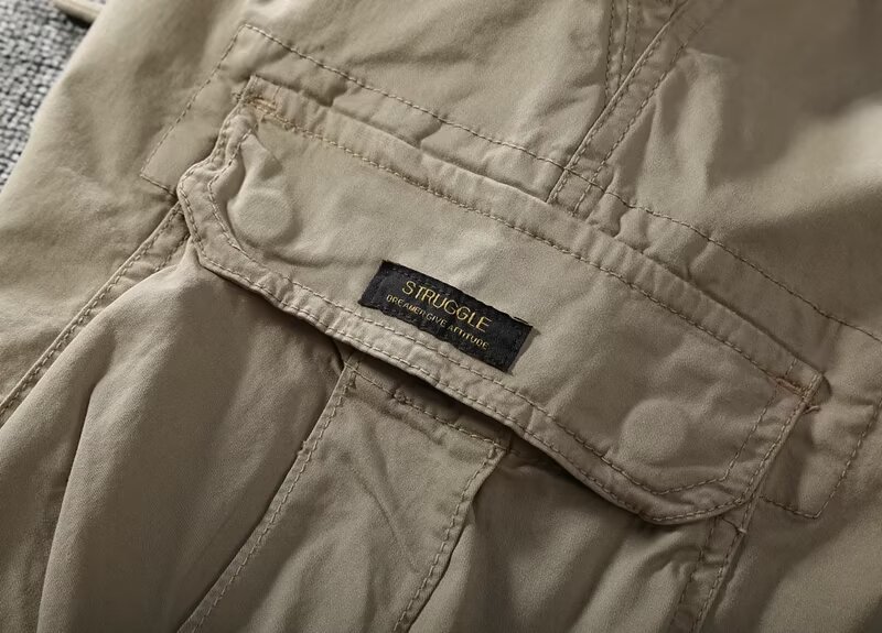남자 봄과 여름 빈티지 올 매치 기능성 세탁 용 주술 바지 스트레이트 캐주얼 독특한 멀티 포켓