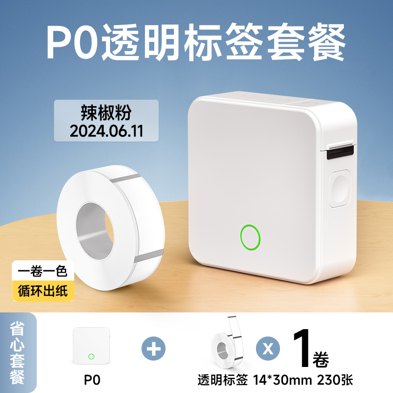 • P0 는 1 롤 14*30mm 투명 라벨과 함께 표준 제공