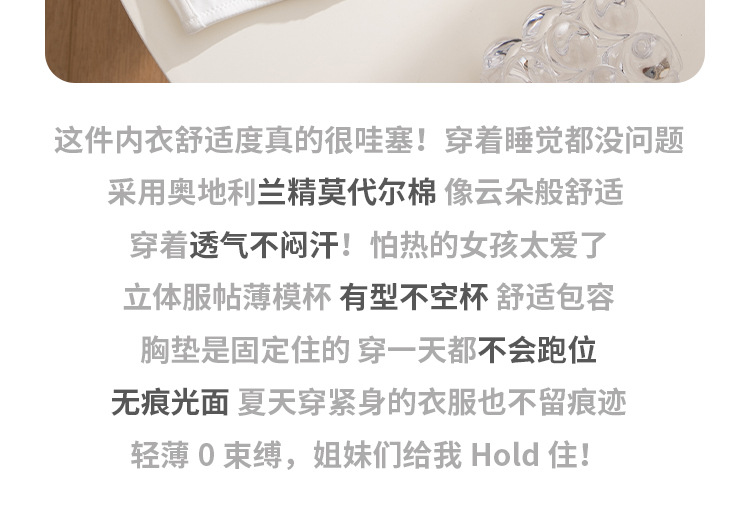 Y 모달 심리스 여성 속옷, 얇은 가슴 모양을 보정하고 처짐 방지, 옆가슴을 모아주는 디자인, 노와이어 통기성 브라스토어 가기