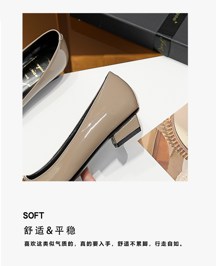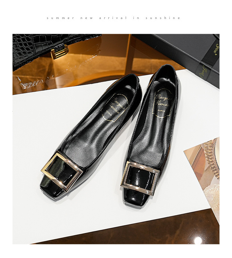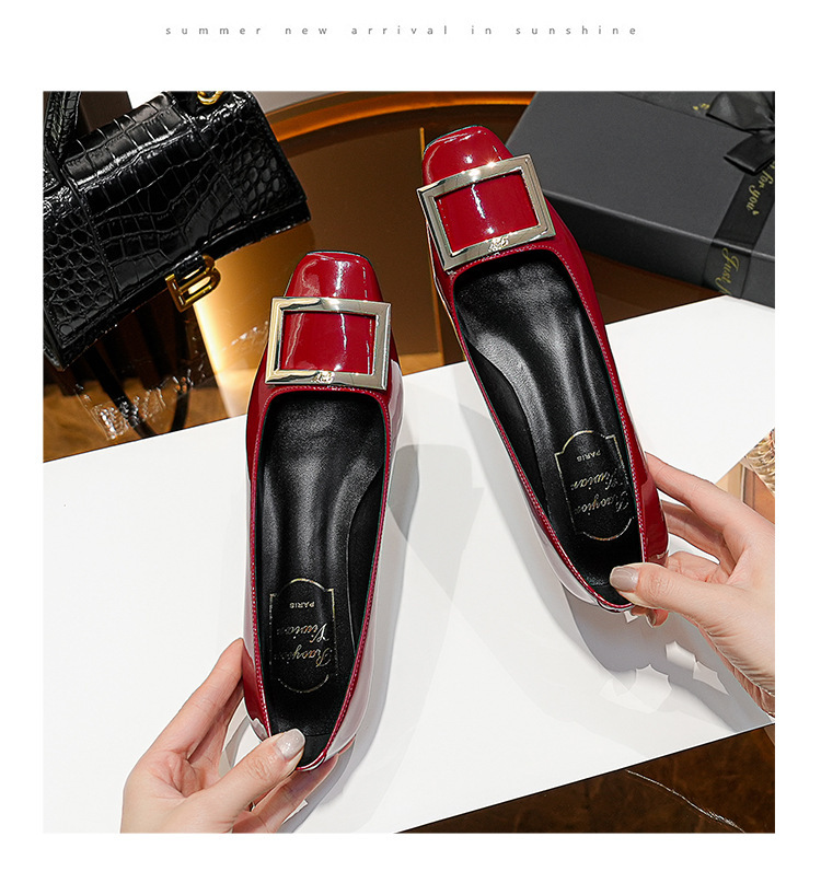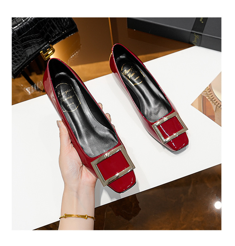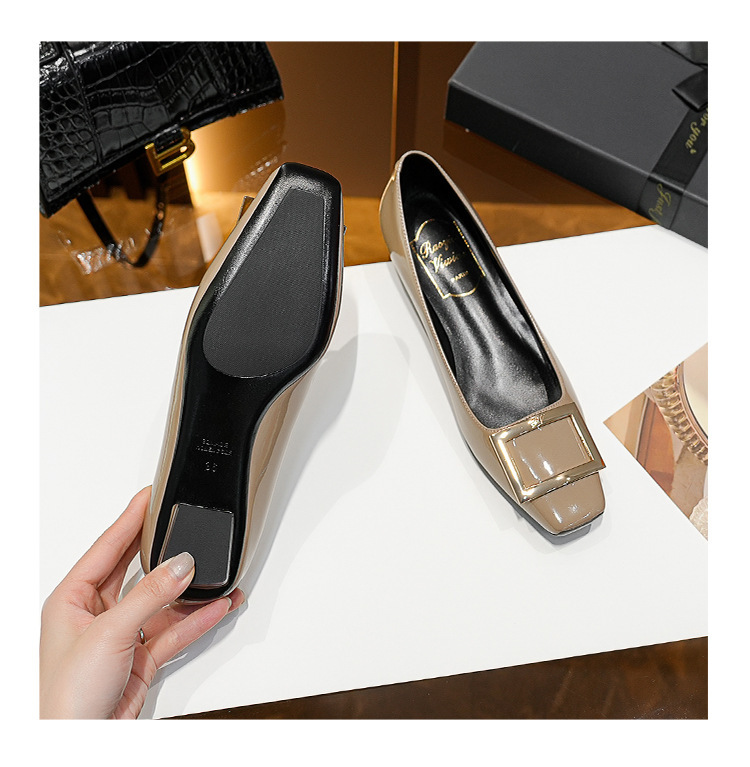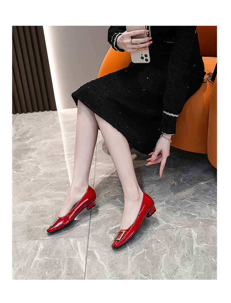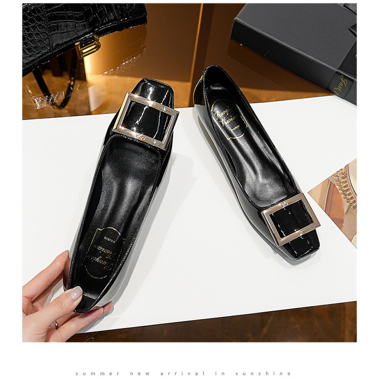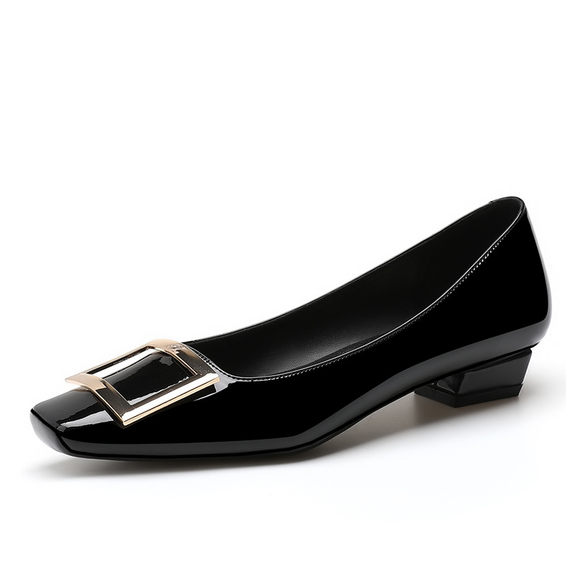 블랙 스퀘어 버클 두꺼운 굽 여성용 신발 2024 여성 신발 코끼리 그레이 래커 가죽 하이힐 스퀘어 토 얕은 굽 2024 신상스토어 가기