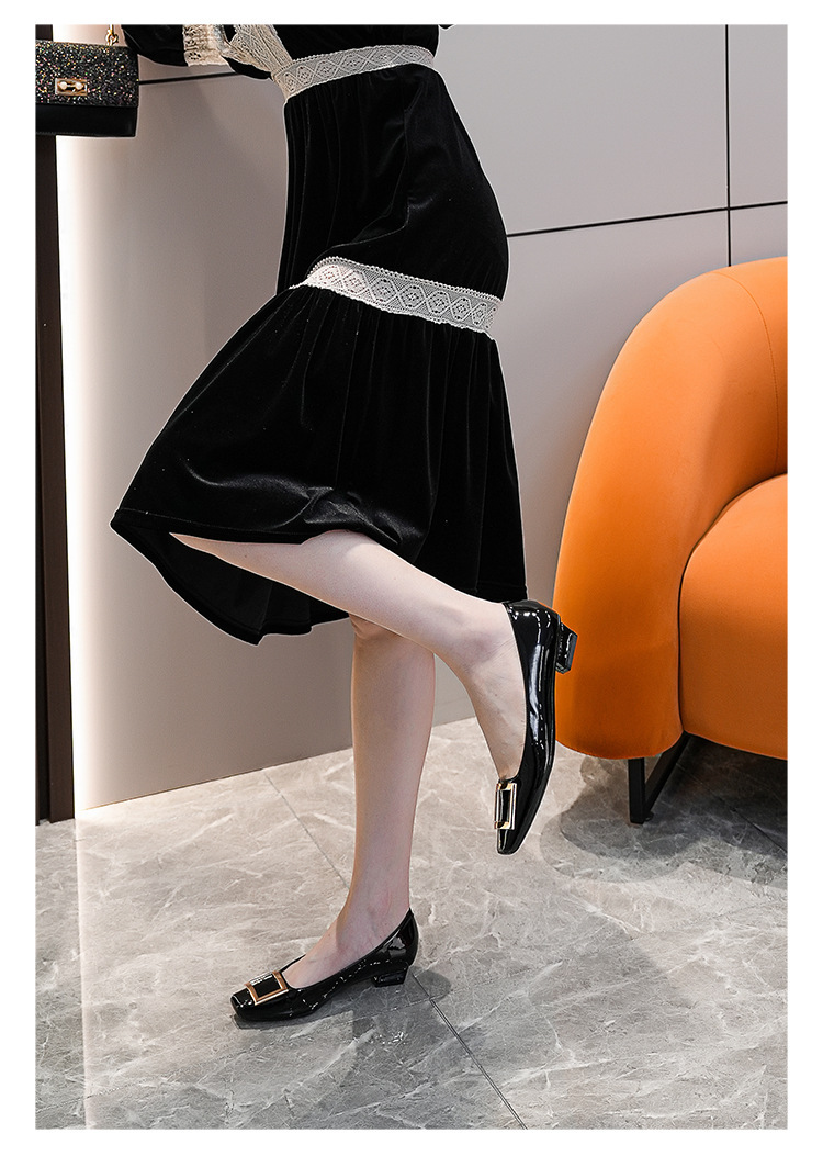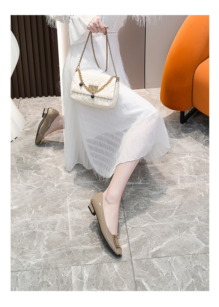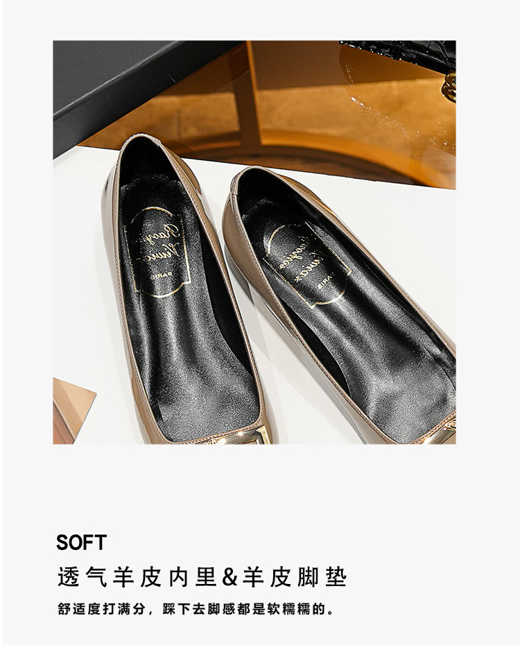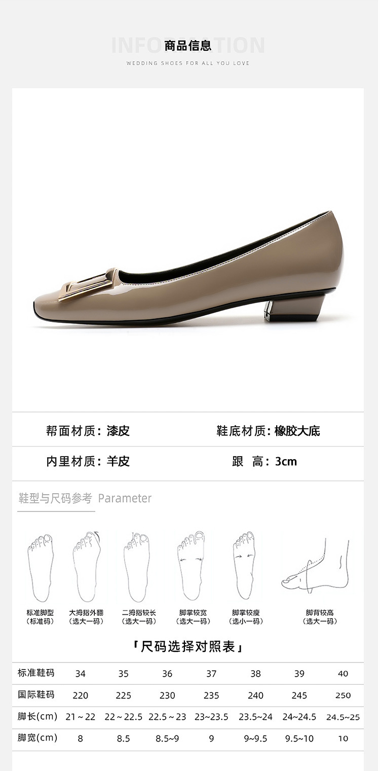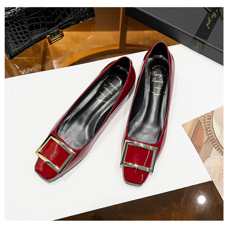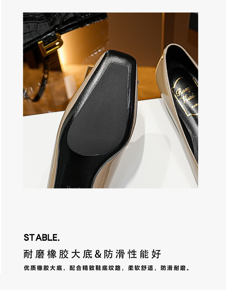 블랙 스퀘어 버클 두꺼운 굽 여성용 신발 2024 여성 신발 코끼리 그레이 래커 가죽 하이힐 스퀘어 토 얕은 굽 2024 신상스토어 가기