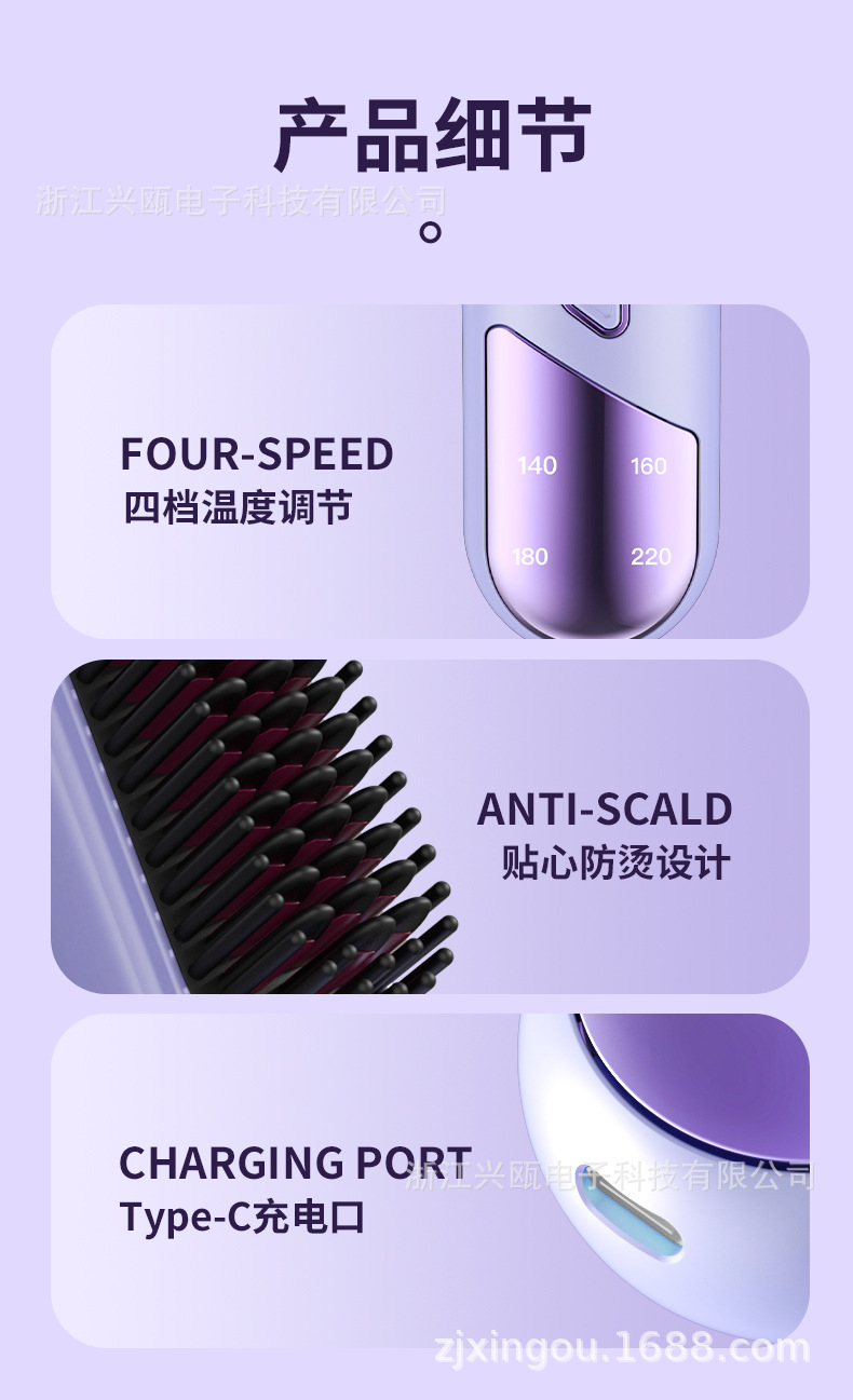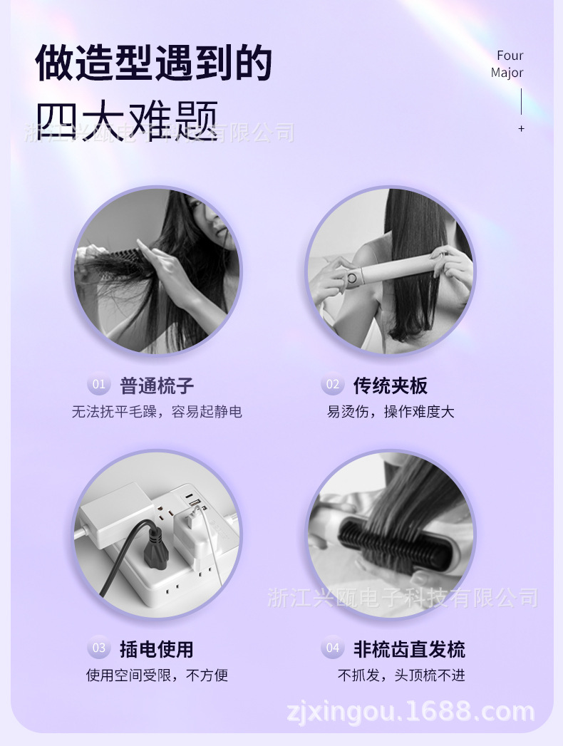무선 스트레이트닝 헤어 빗 가정용 미니 네거티브 이온 헤어 케어 충전식 휴대용 여행 헤어 빗 정전기 방지 컬링 헤어 스트레이트너스토어 가기