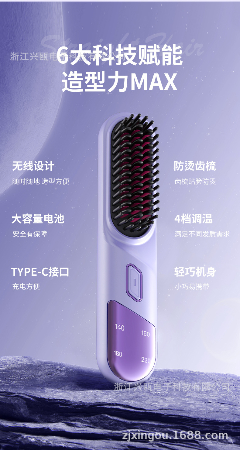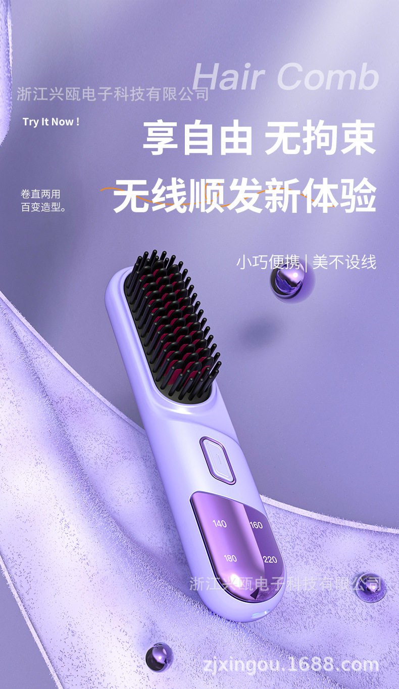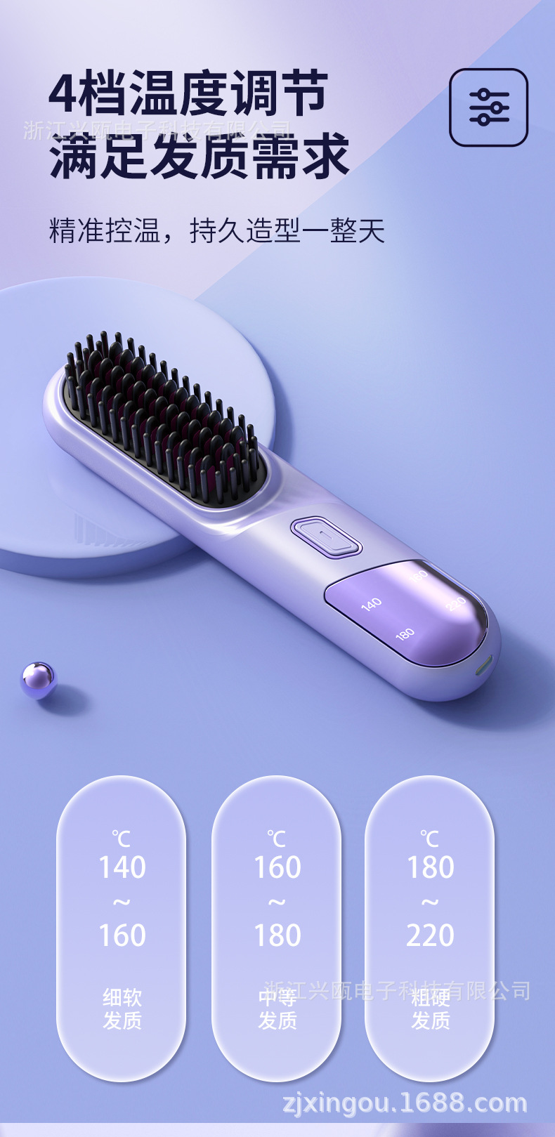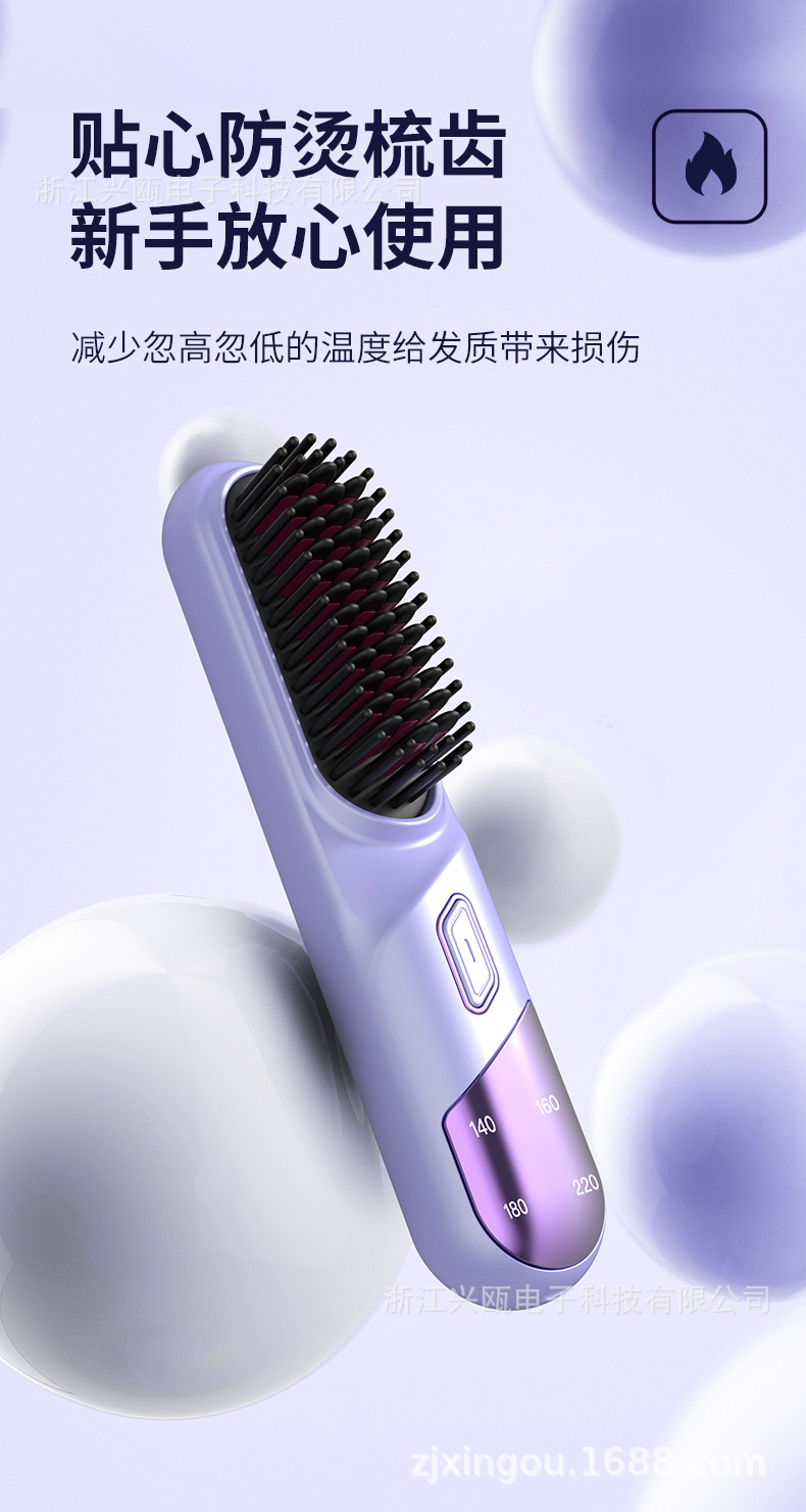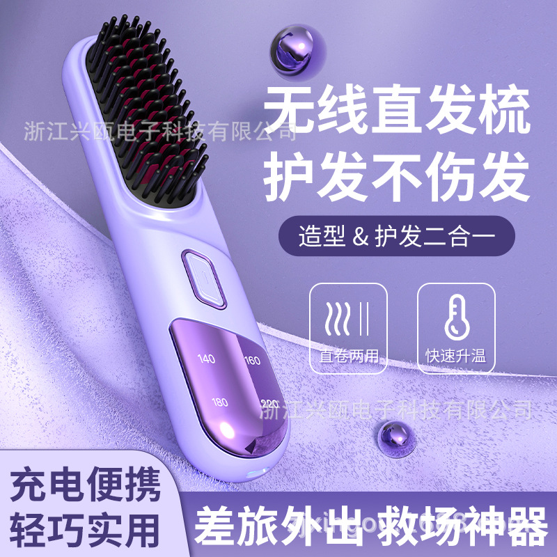 무선 스트레이트닝 헤어 빗 가정용 미니 네거티브 이온 헤어 케어 충전식 휴대용 여행 헤어 빗 정전기 방지 컬링 헤어 스트레이트너