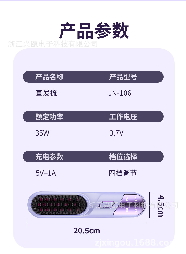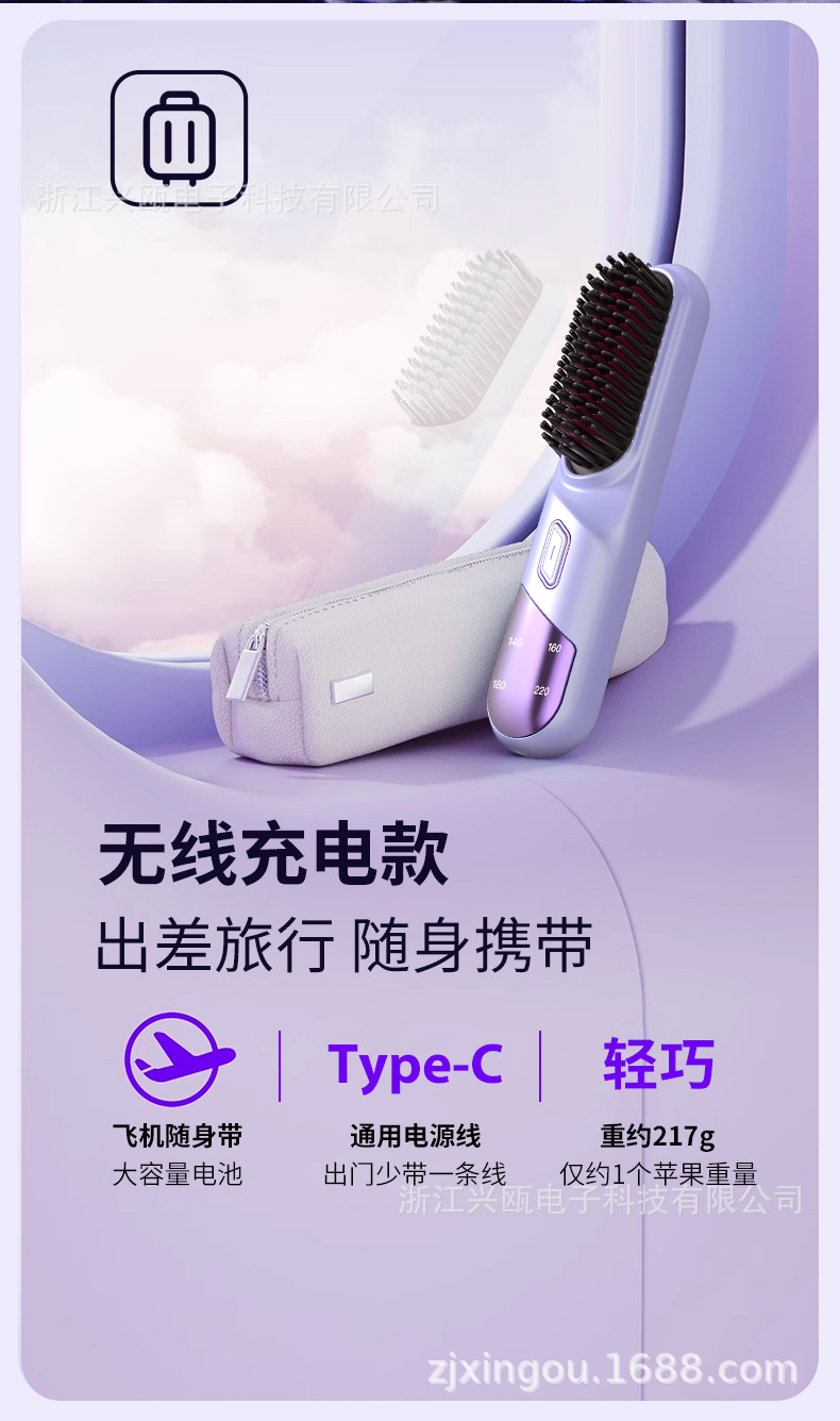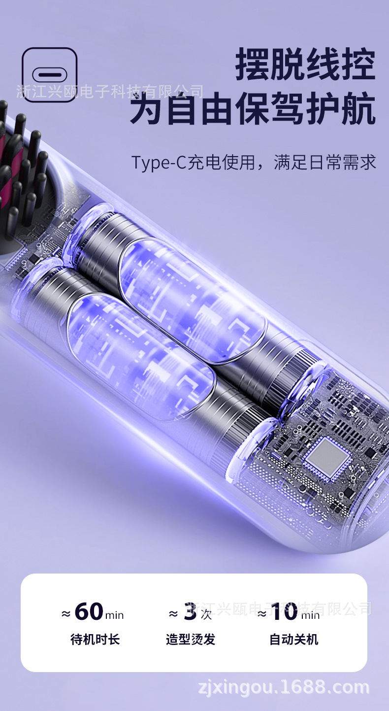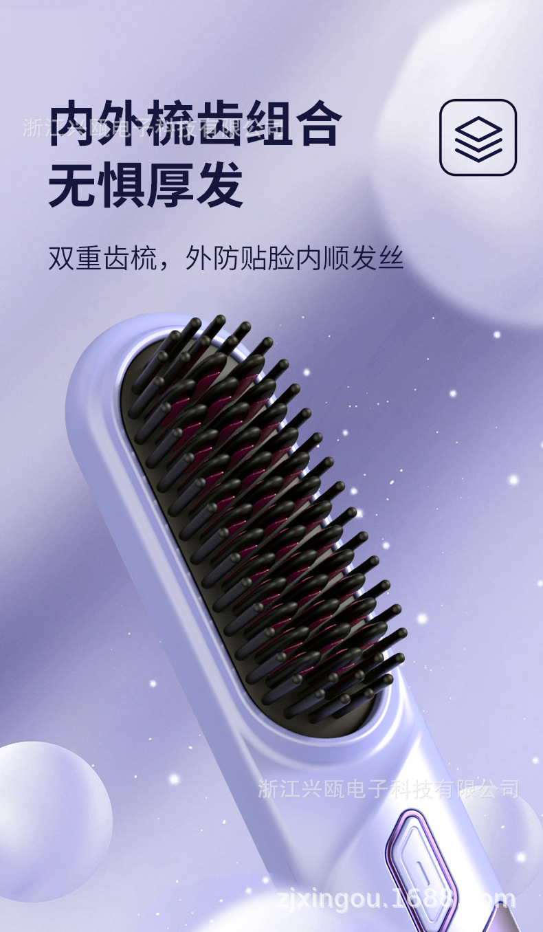 무선 스트레이트닝 헤어 빗 가정용 미니 네거티브 이온 헤어 케어 충전식 휴대용 여행 헤어 빗 정전기 방지 컬링 헤어 스트레이트너