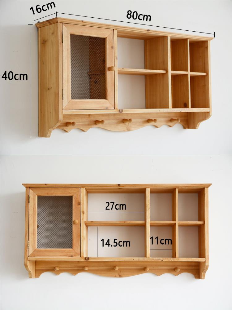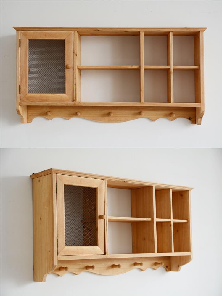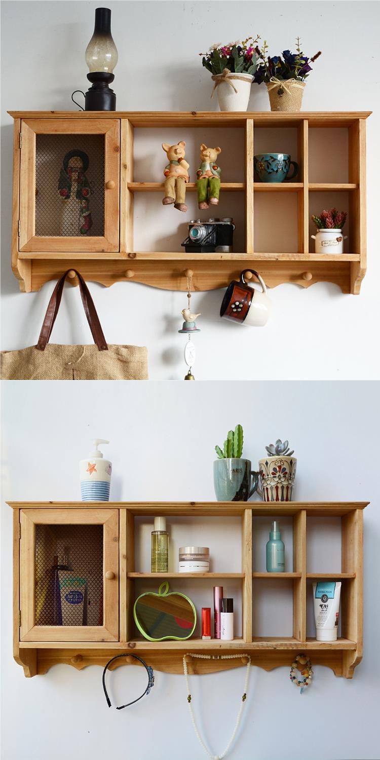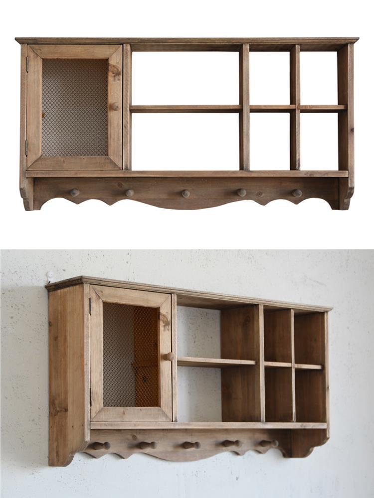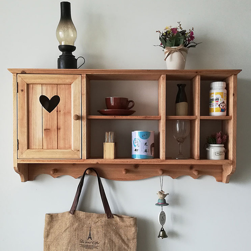 단단한 나무 빈티지 저장 벽 랙 컵 차 세트 테이블 사이드 선반 벽 장식 창조적 인 벽 교수형 캐비닛스토어 가기