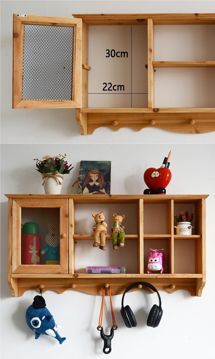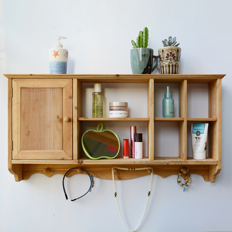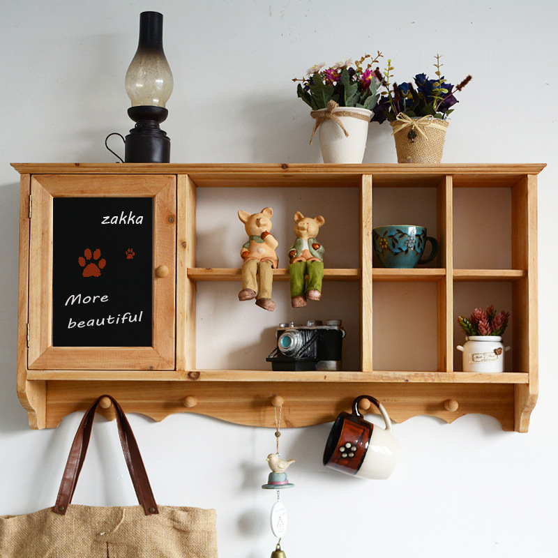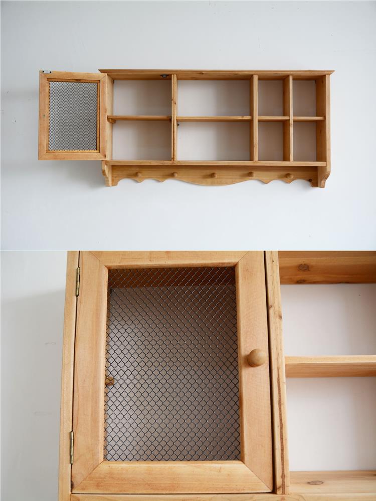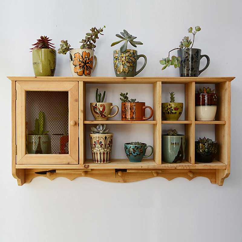 단단한 나무 빈티지 저장 벽 랙 컵 차 세트 테이블 사이드 선반 벽 장식 창조적 인 벽 교수형 캐비닛스토어 가기