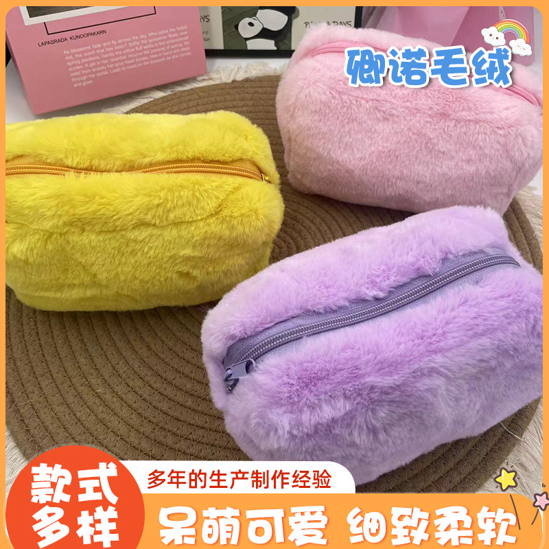 와우! 해외 직구용 봉제 화장품 가방, 소녀풍 마카롱 색상 봉제 필통, 캔디 색상 화장품 가방 필통스토어 가기