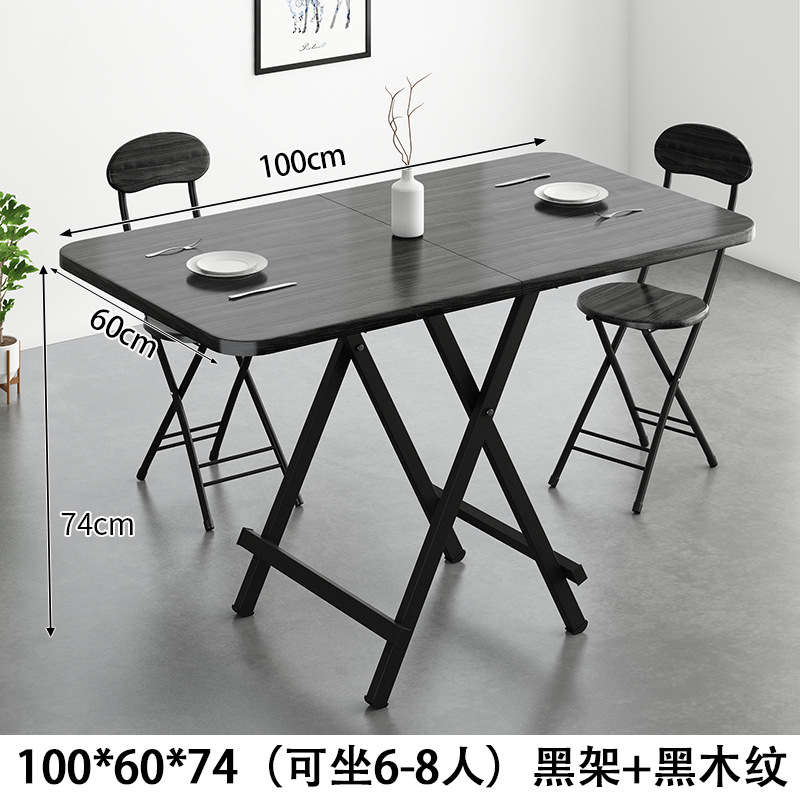 • [6-8 사람들에게 적합] 긴 사각형 테이블 100*60*74 블랙 프레임 블랙 우드 그레인