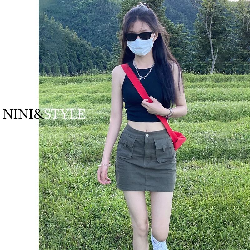높은 허리 데님 작업복 치마 작은 여성복 안티 라이트 2024 그레이 그린 새로운 엉덩이 커버 짧은 치마스토어 가기