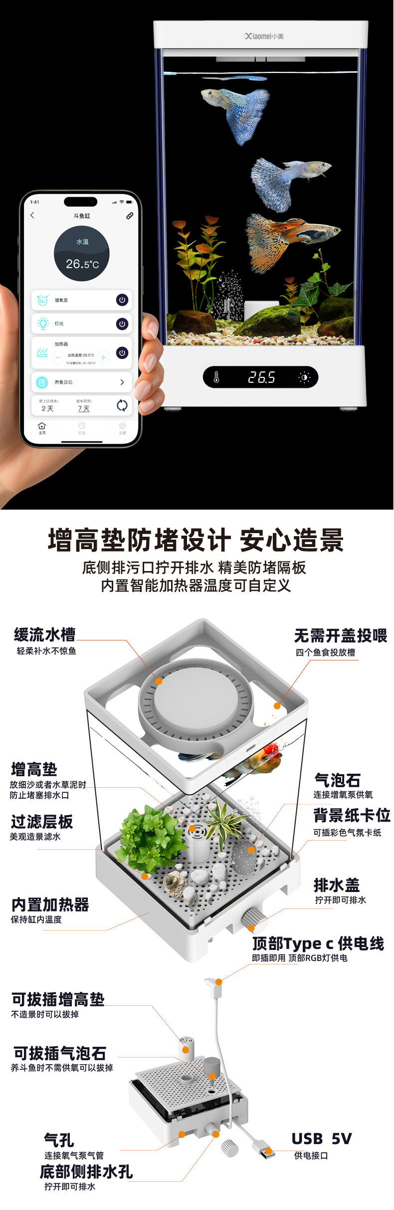 블루투스 버전 Betta 특수 수조 소형 수조 생태 자체 순환 책상 창의적인 조경 난방 조명