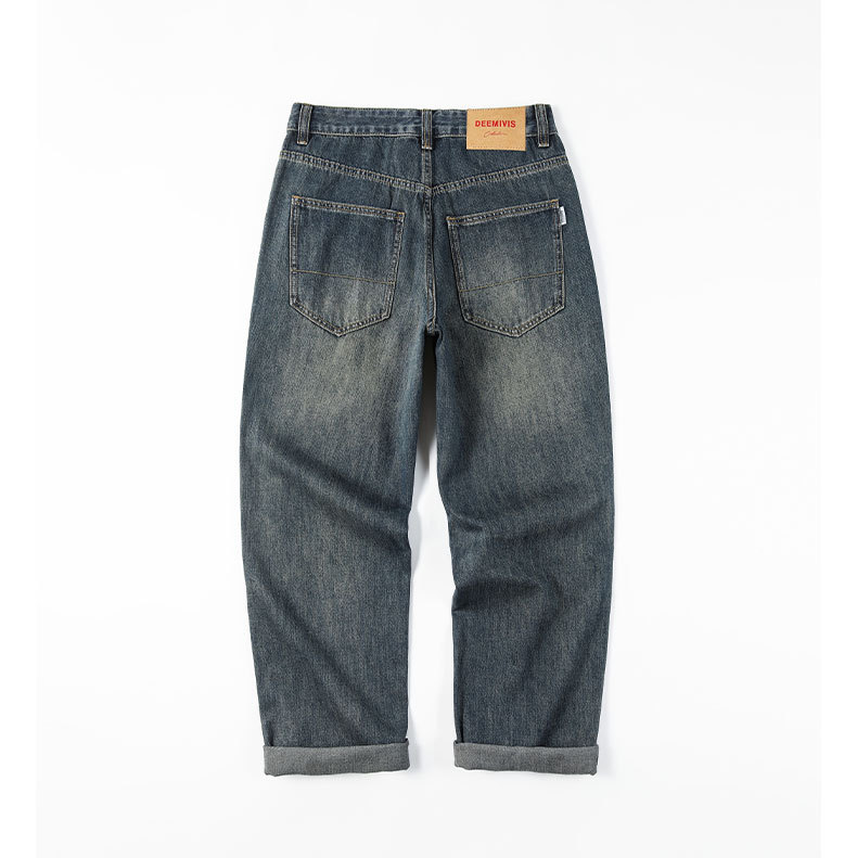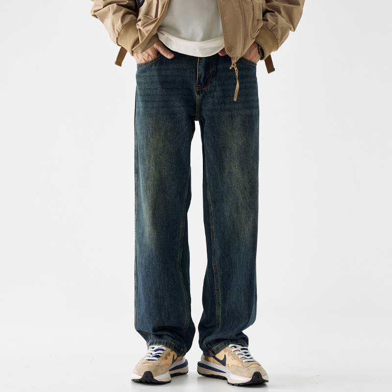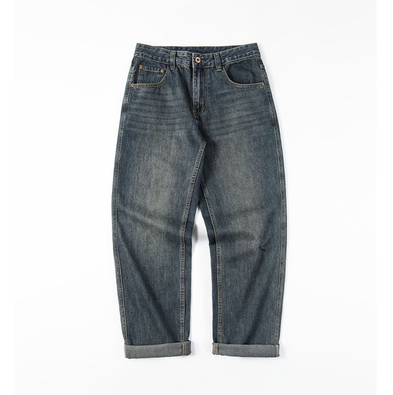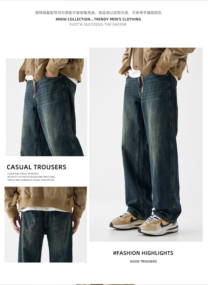 무추 남성복∣일본풍 빈티지 워싱 데님 팬츠 남성용 아메리칸 하이 스트리트 레트로 빅사이즈 루즈핏 와이드 팬츠