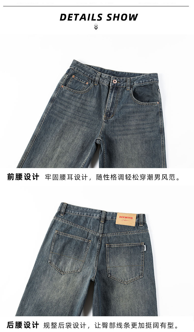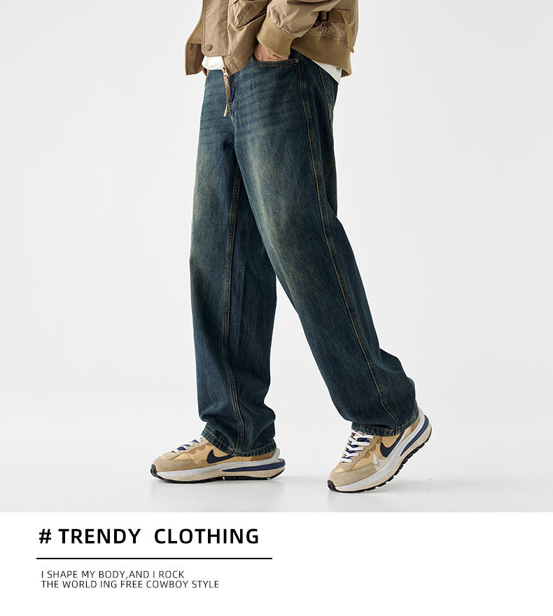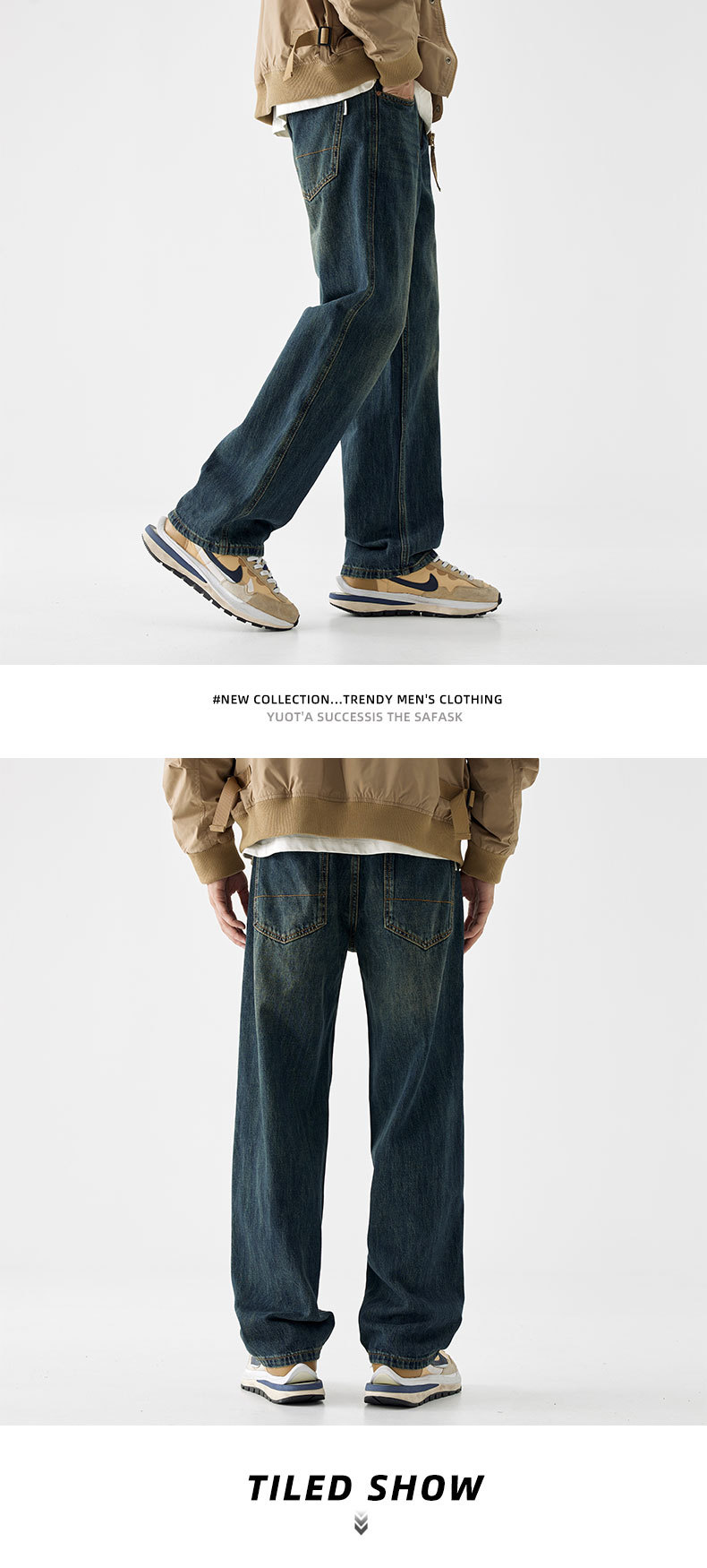 무추 남성복∣일본풍 빈티지 워싱 데님 팬츠 남성용 아메리칸 하이 스트리트 레트로 빅사이즈 루즈핏 와이드 팬츠스토어 가기