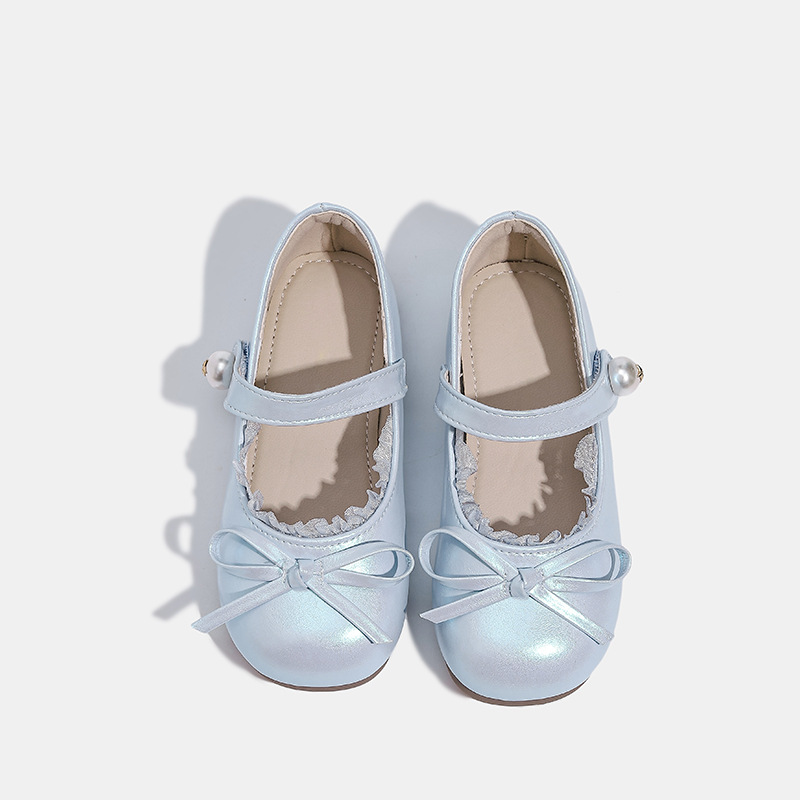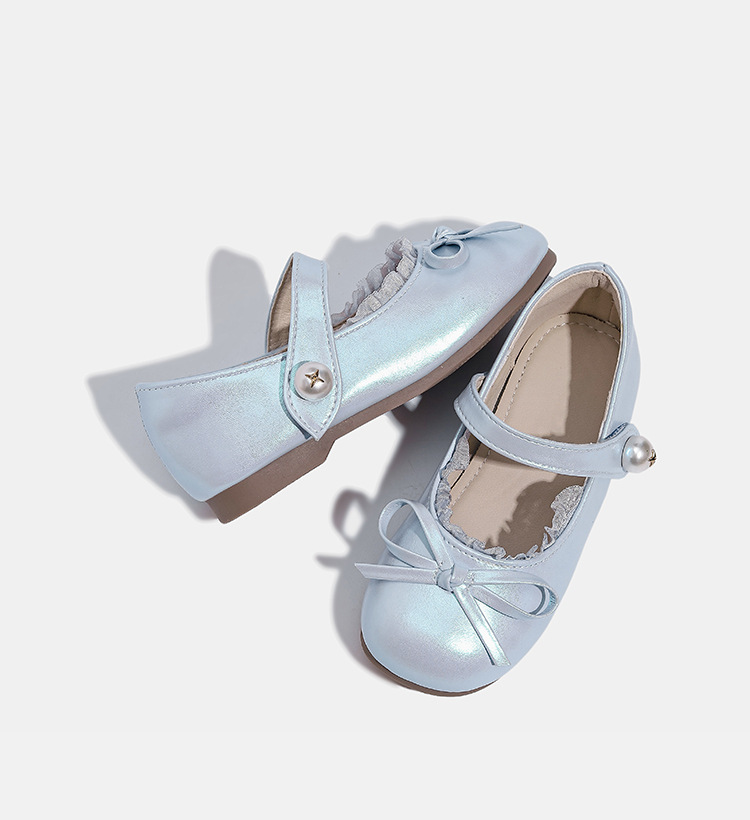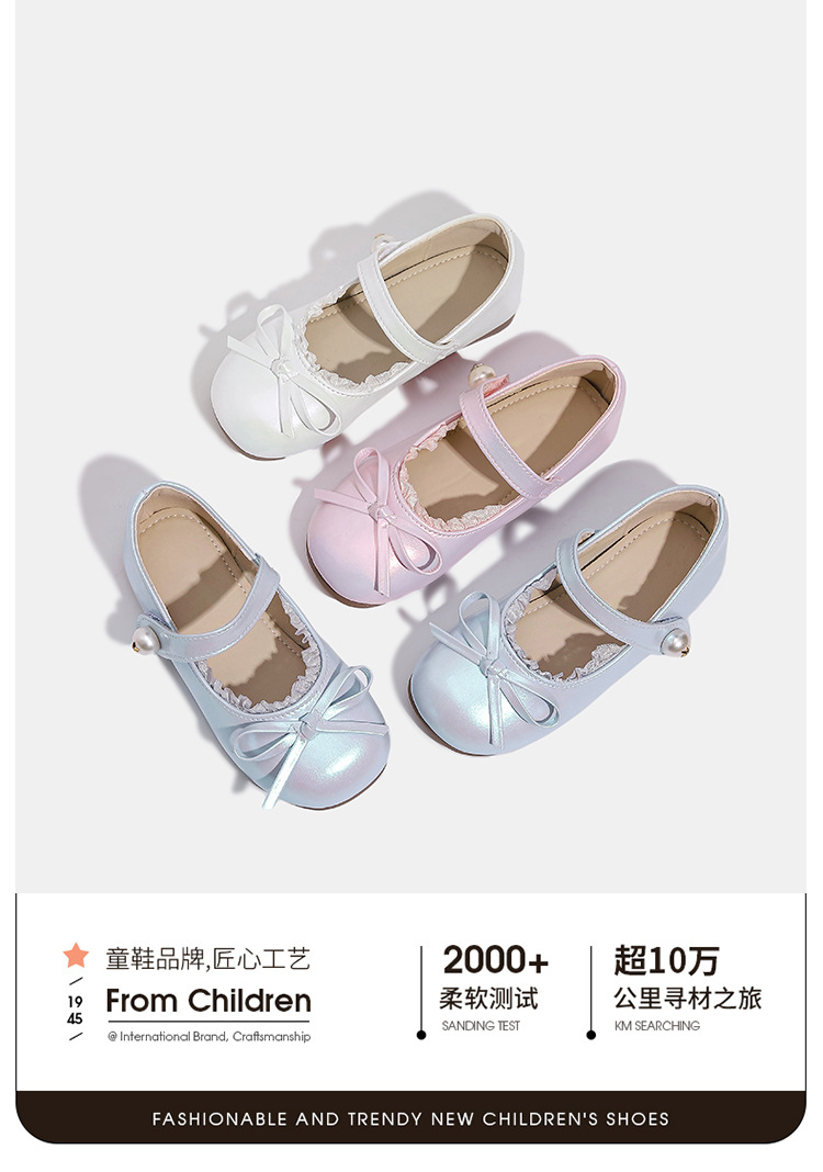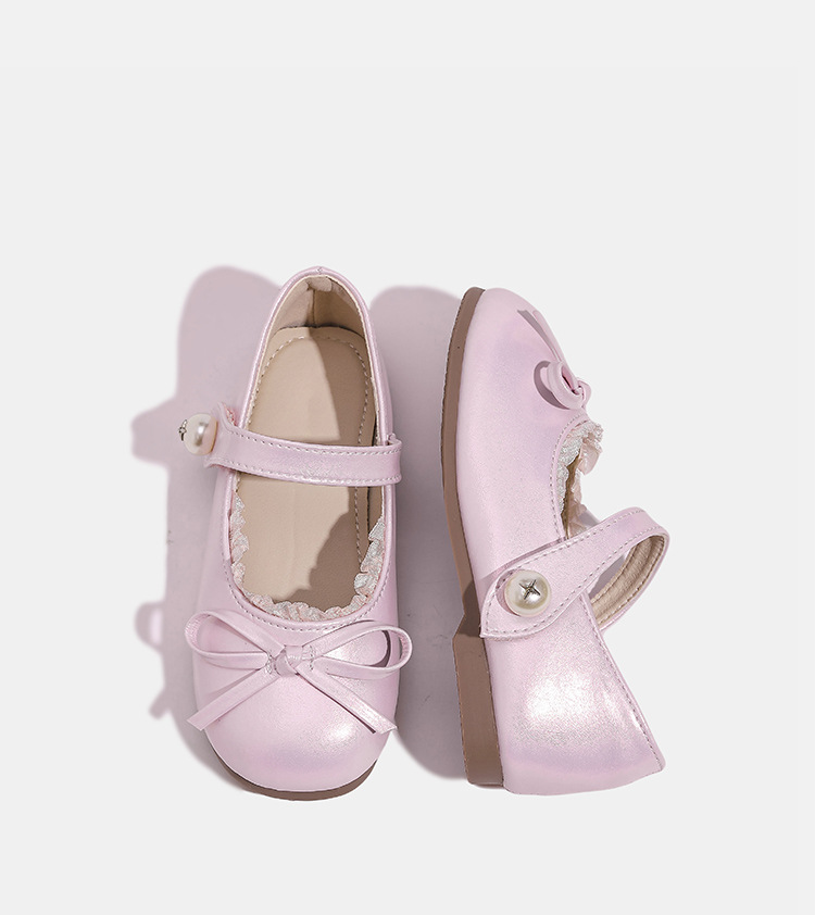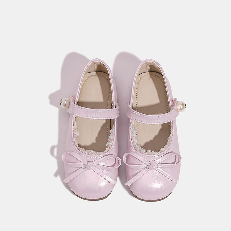 2025 여름 새 스타일 진주 빛 발레 신발 소녀를위한 편광 된 나비 매듭 둥근 발가락 다목적 패션 공주 신발스토어 가기