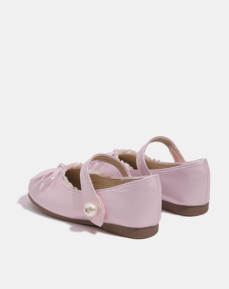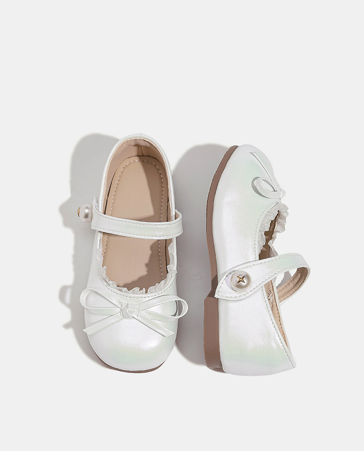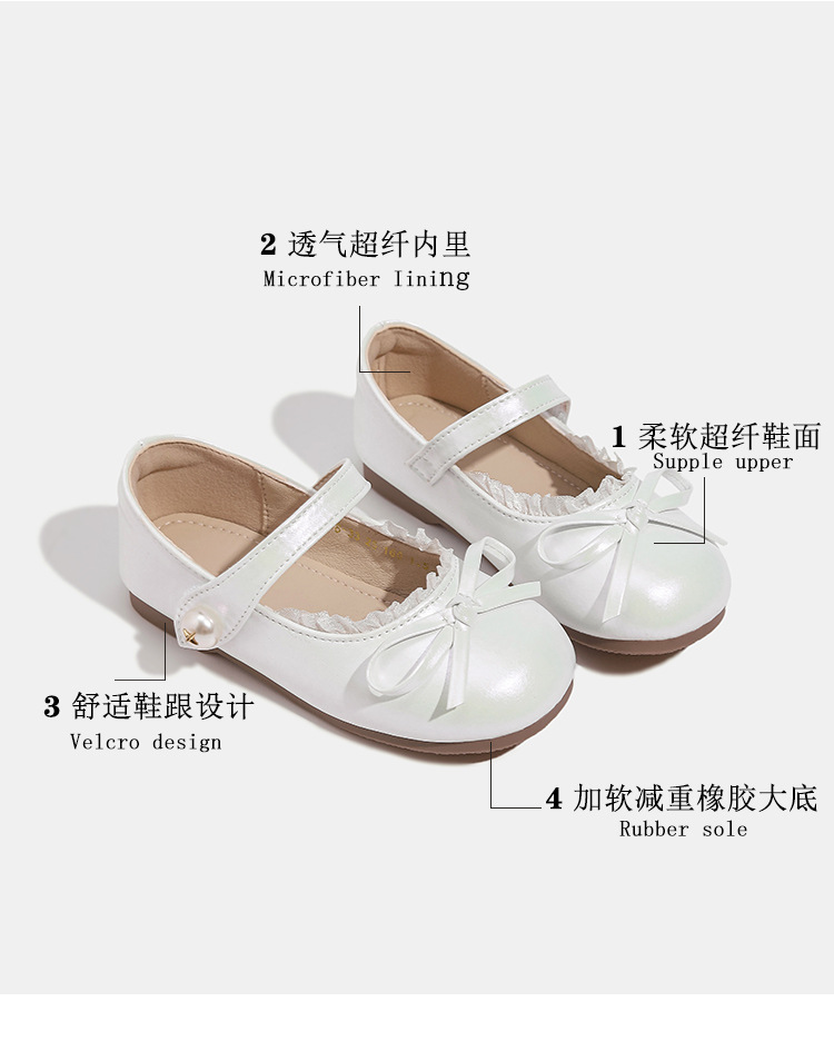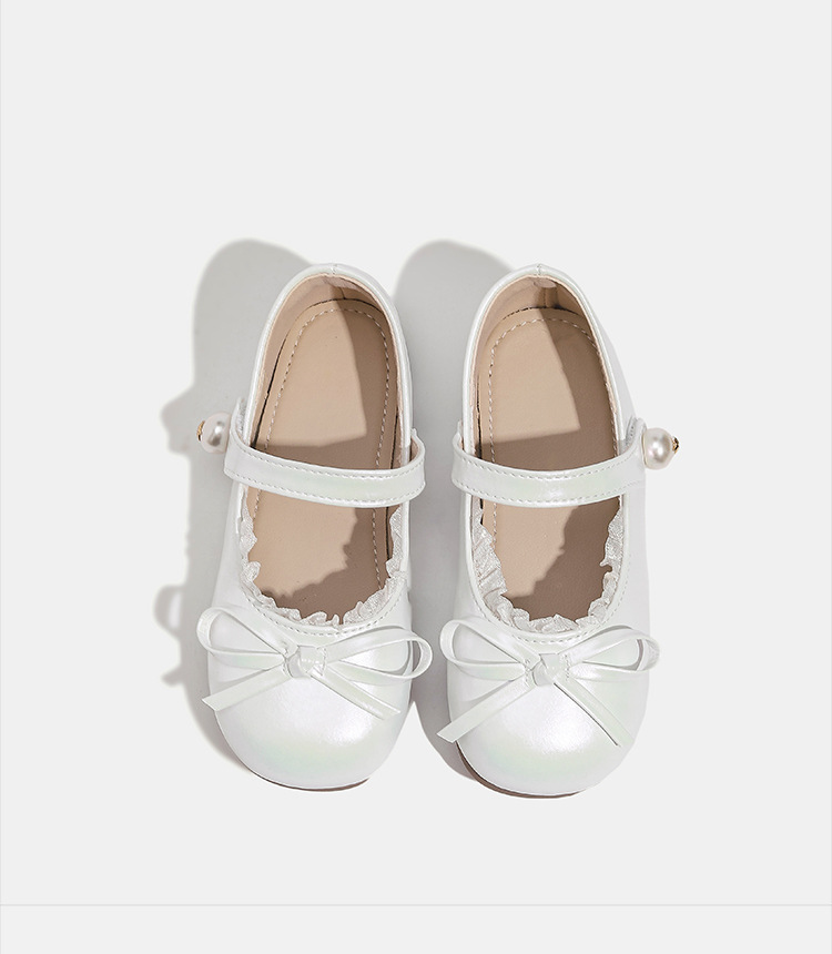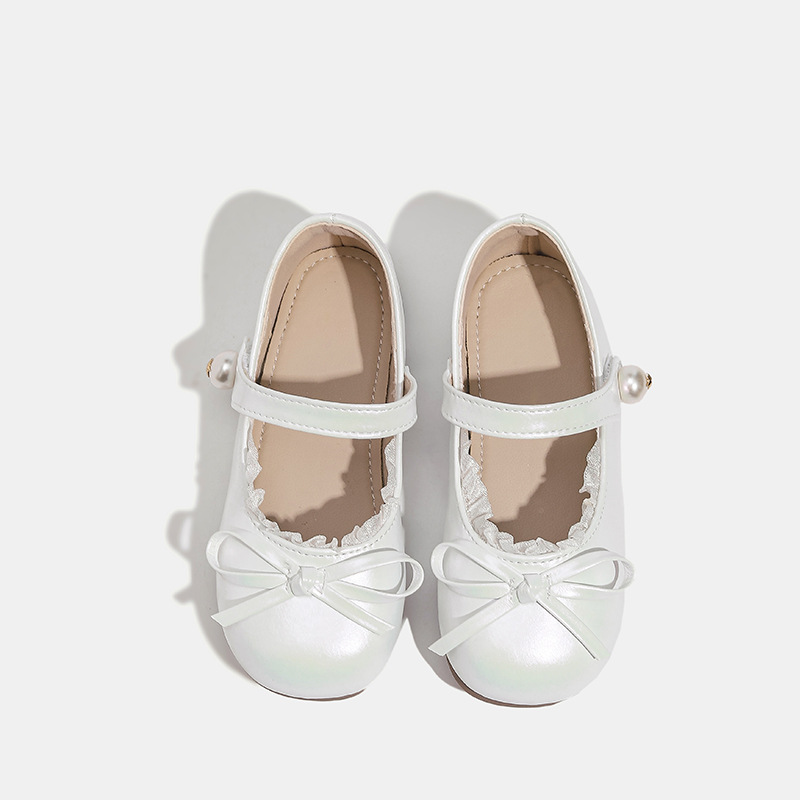 2025 여름 새 스타일 진주 빛 발레 신발 소녀를위한 편광 된 나비 매듭 둥근 발가락 다목적 패션 공주 신발스토어 가기