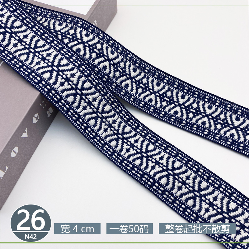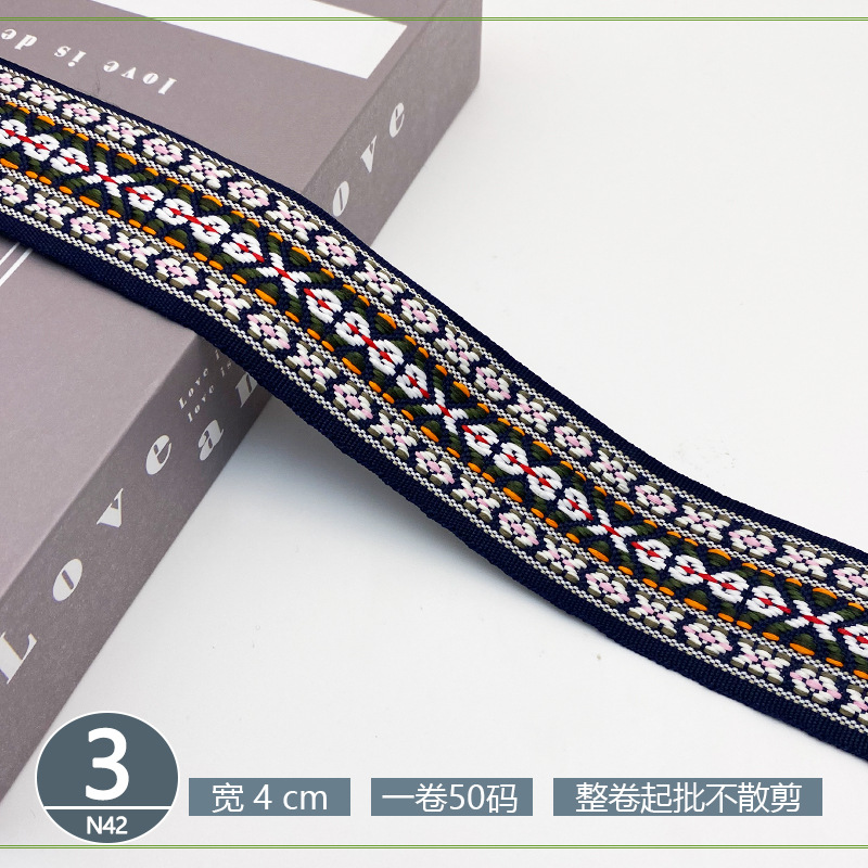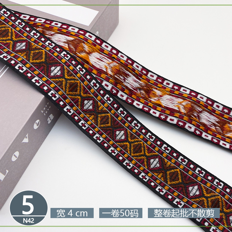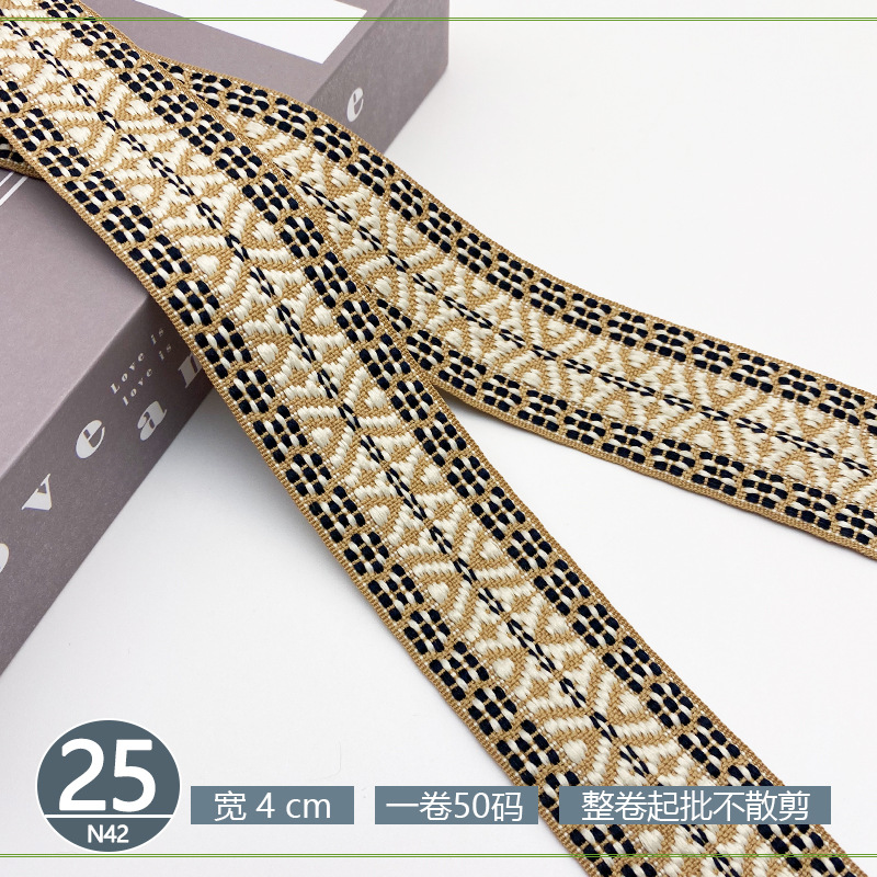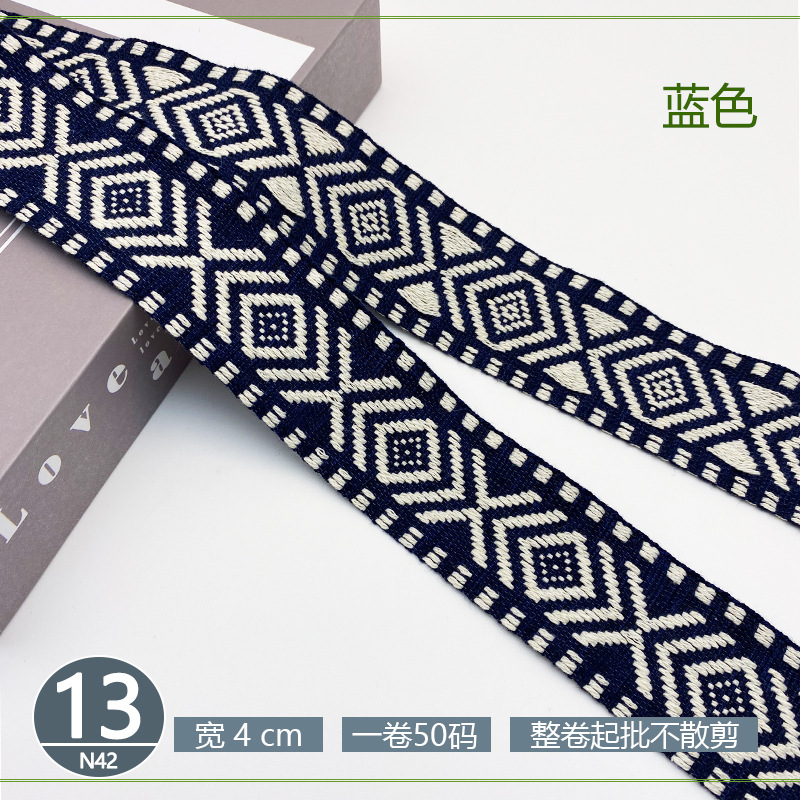 폴리 에스터 자카드 리본 민족 스타일 4CM 다이아몬드 레이스 액세서리 의류 학교 가방 스트랩 모자 수제 DIY 헤어 액세서리