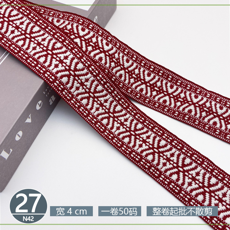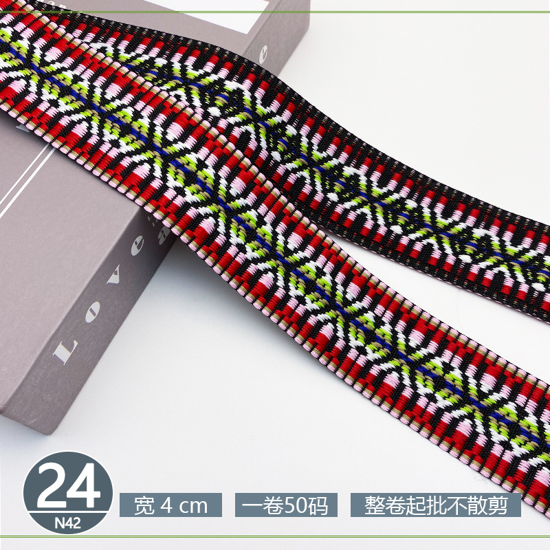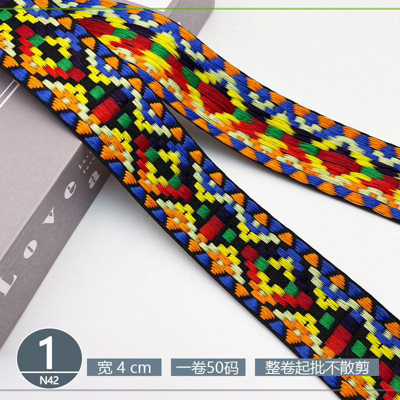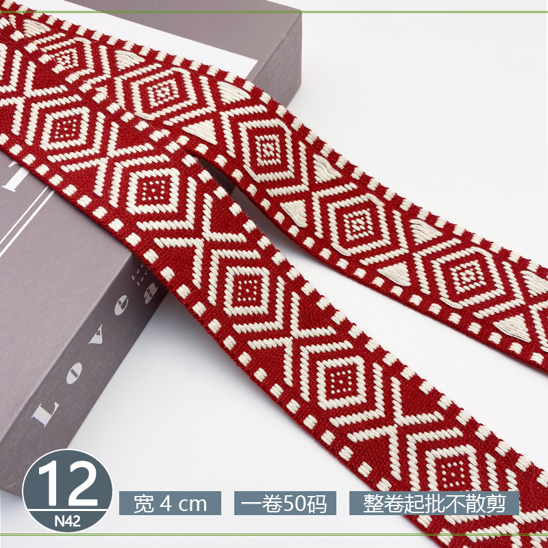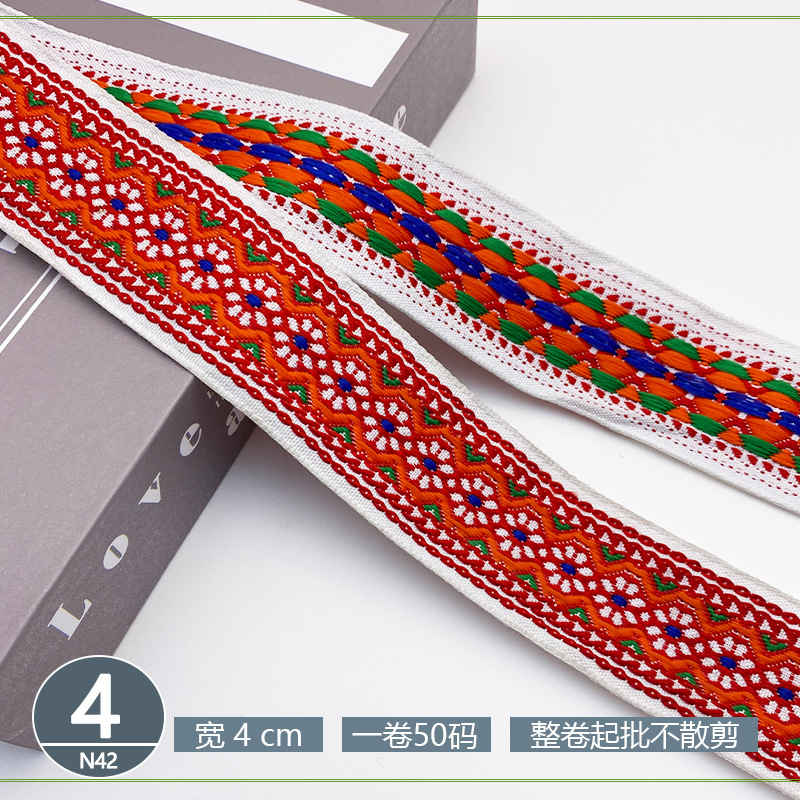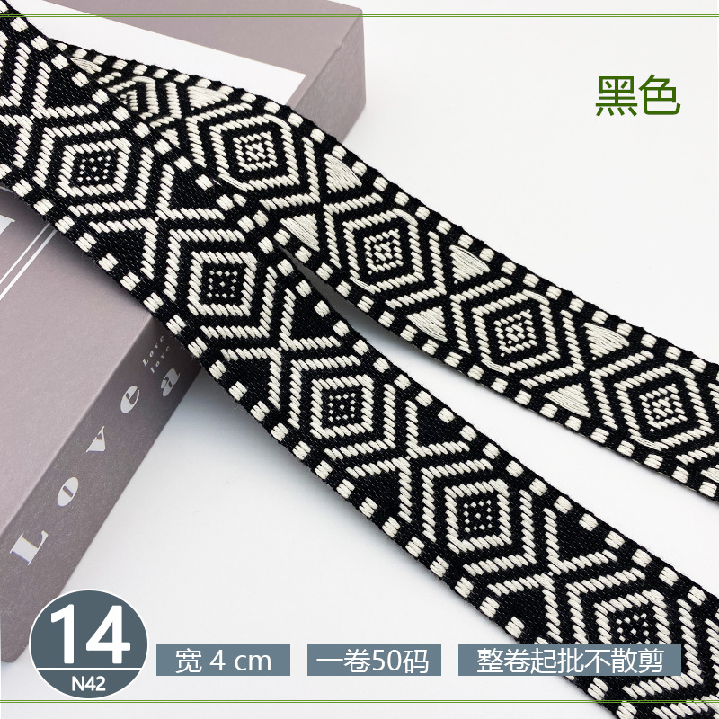 폴리 에스터 자카드 리본 민족 스타일 4CM 다이아몬드 레이스 액세서리 의류 학교 가방 스트랩 모자 수제 DIY 헤어 액세서리