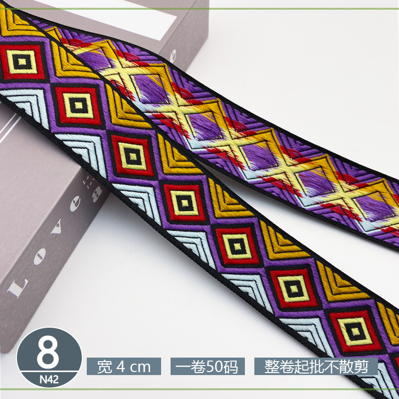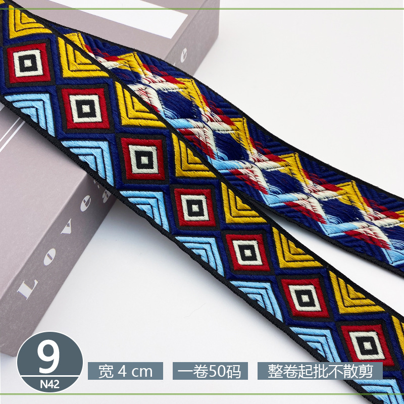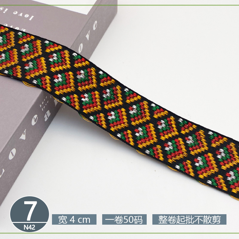 폴리 에스터 자카드 리본 민족 스타일 4CM 다이아몬드 레이스 액세서리 의류 학교 가방 스트랩 모자 수제 DIY 헤어 액세서리스토어 가기