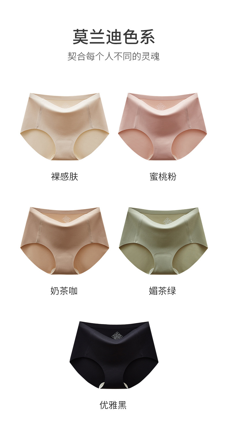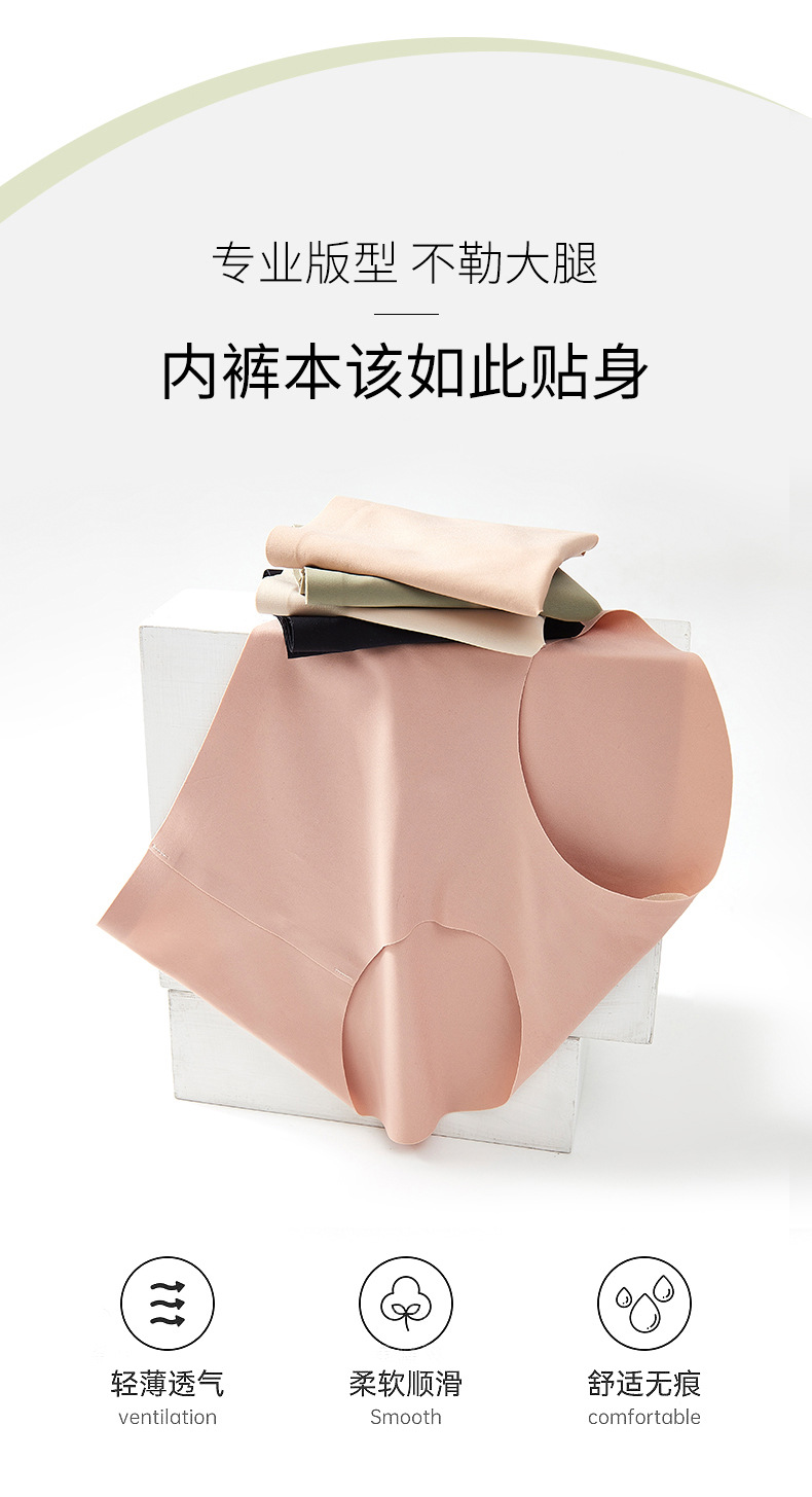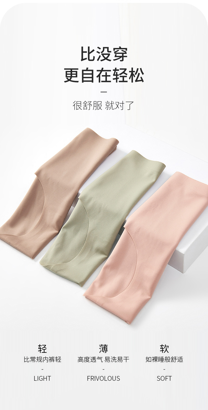 아이스 실크 추적없는 속옷 여성의 여름 얇은 뽕나무 실크 바닥 중간 허리 편안한 통기성 소녀 삼각형 바지스토어 가기
