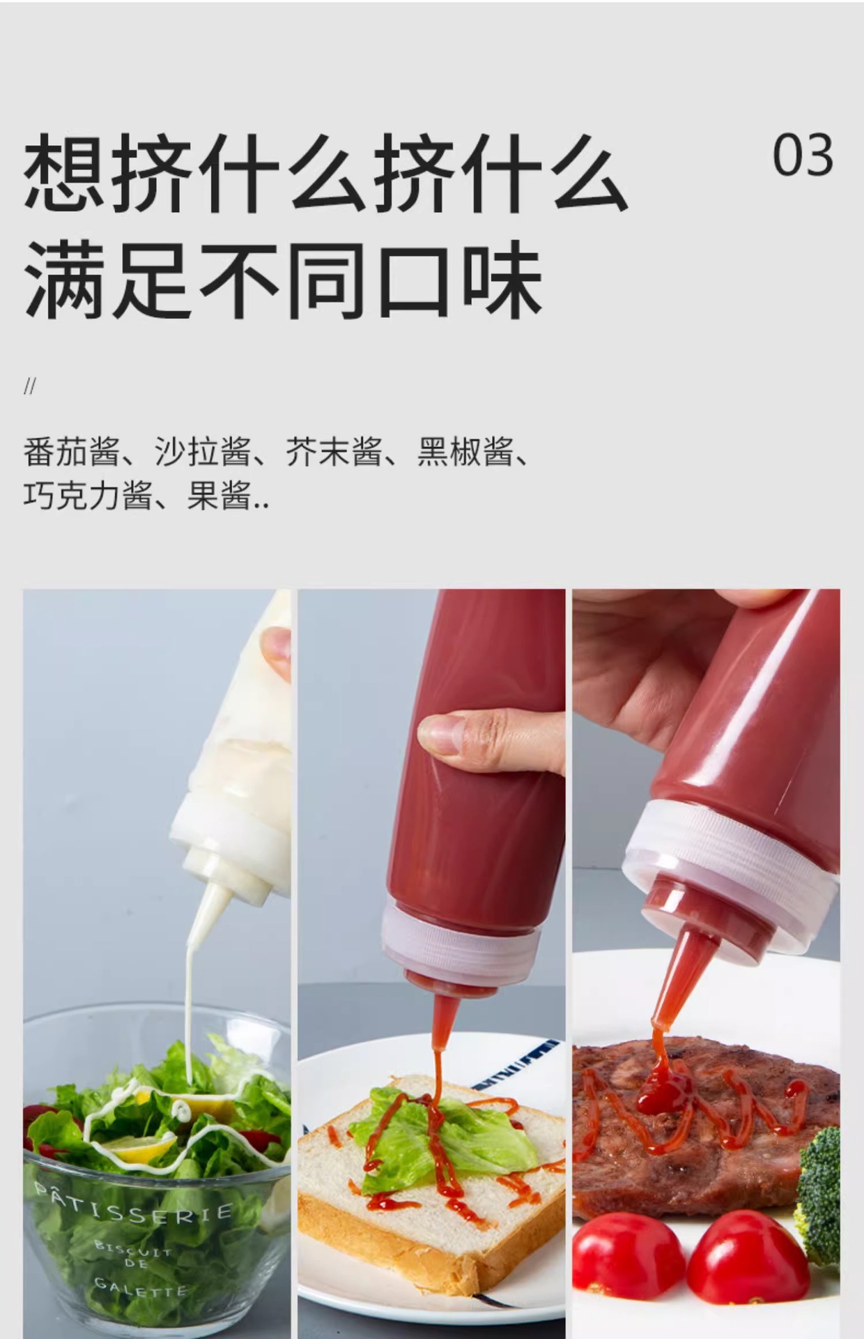 3 팩 짜낸 소스 병 투명한 뾰족한 입 토마토 소스 꿀 크림 샐러드 소스 오일 소비 플라스틱 향신료 병스토어 가기