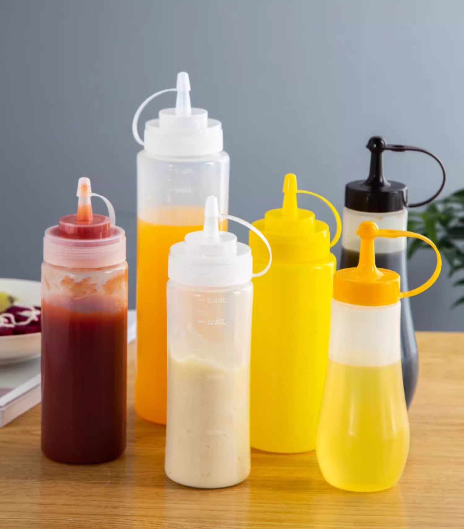 3 팩 짜낸 소스 병 투명한 뾰족한 입 토마토 소스 꿀 크림 샐러드 소스 오일 소비 플라스틱 향신료 병