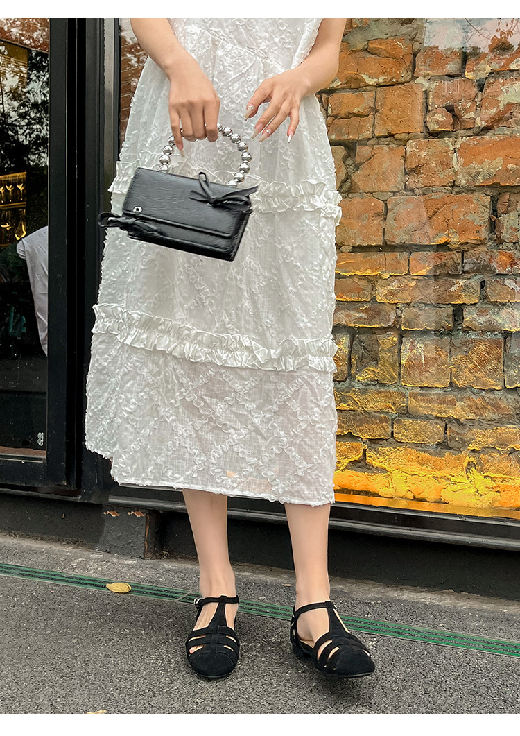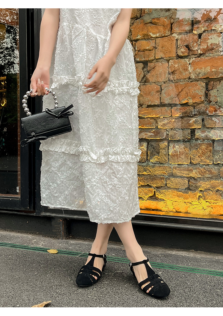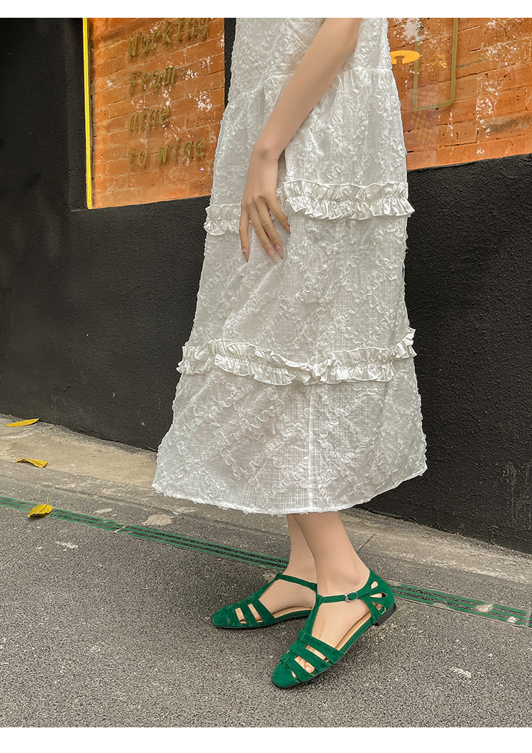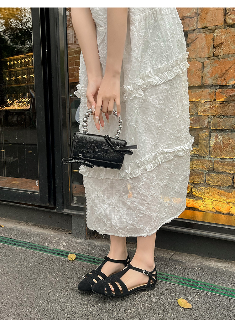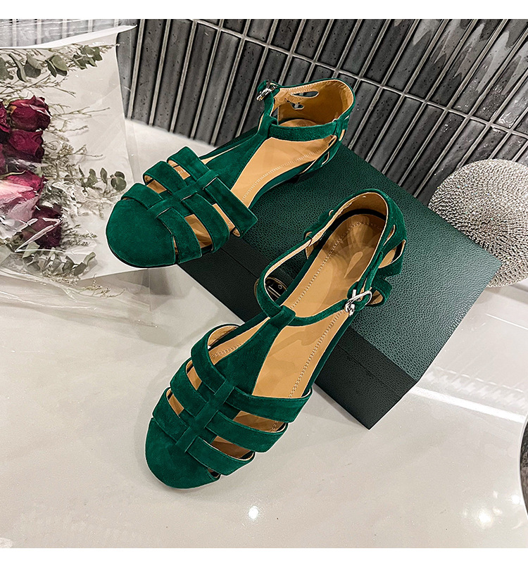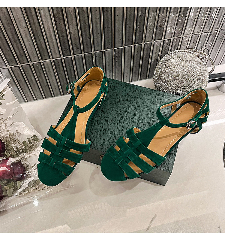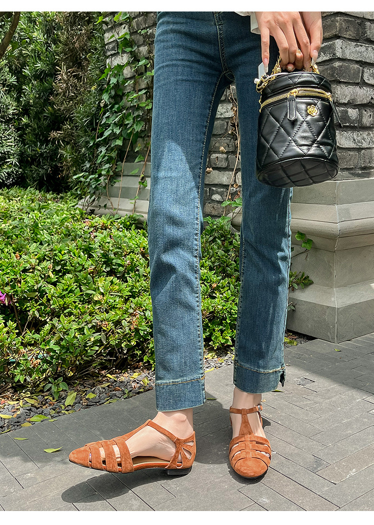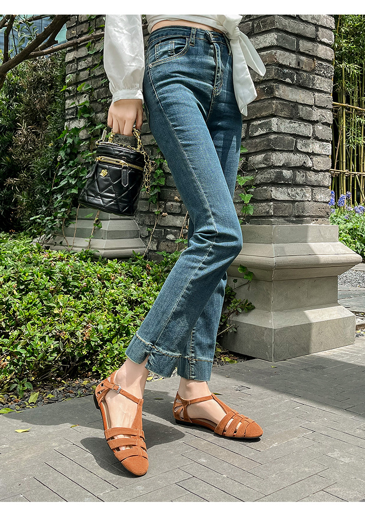 발가락 샌들 여성용 2024 년 여름 새로운 레트로 로마 스타일 할로우 가죽 버클 플랫 샌들 여성용