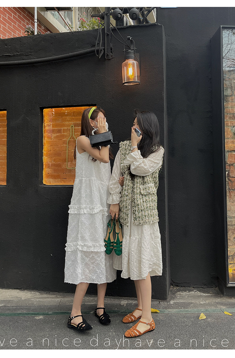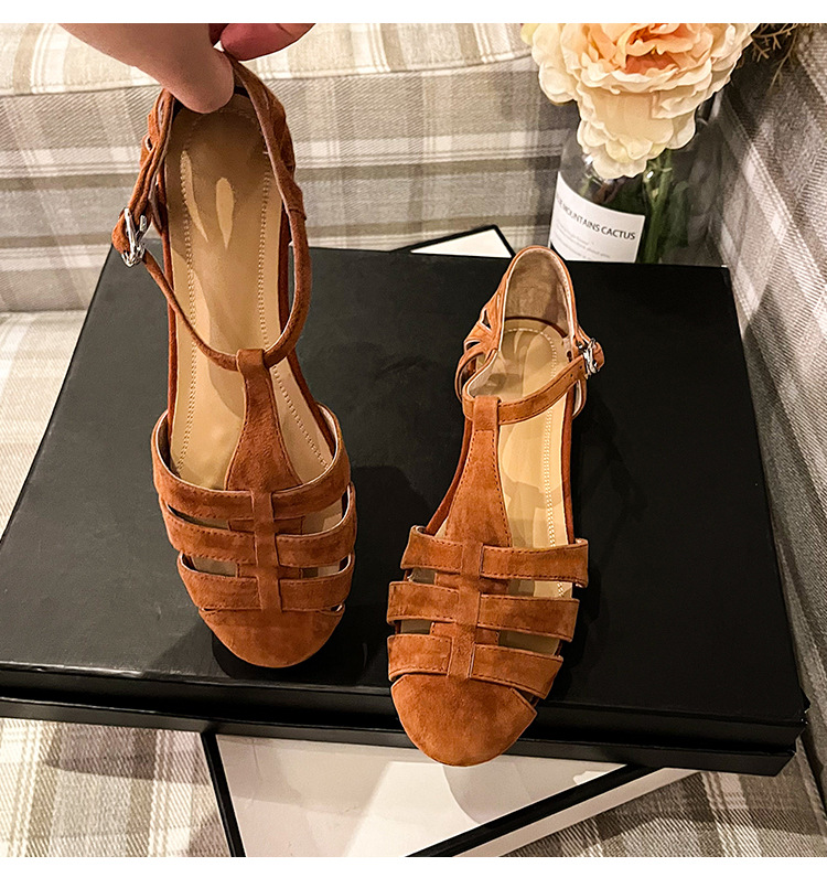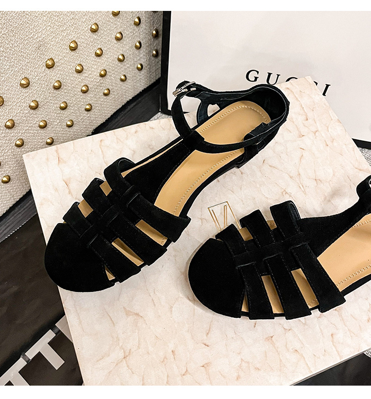 발가락 샌들 여성용 2024 년 여름 새로운 레트로 로마 스타일 할로우 가죽 버클 플랫 샌들 여성용스토어 가기