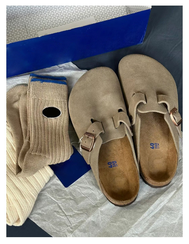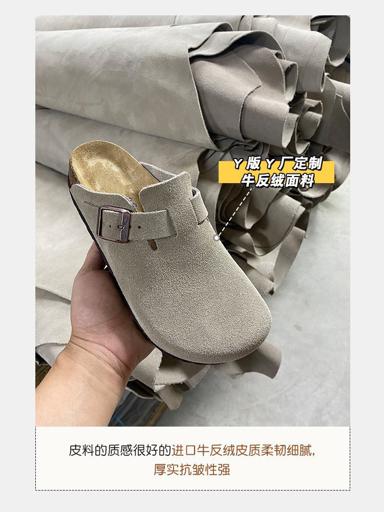 슈퍼 좋은 버전, Birkenneth 신발 전체 Cowhide 2025 남성과 여성의 가죽 두꺼운 바닥 게으른 코르크 Baotou 하프 슬리퍼