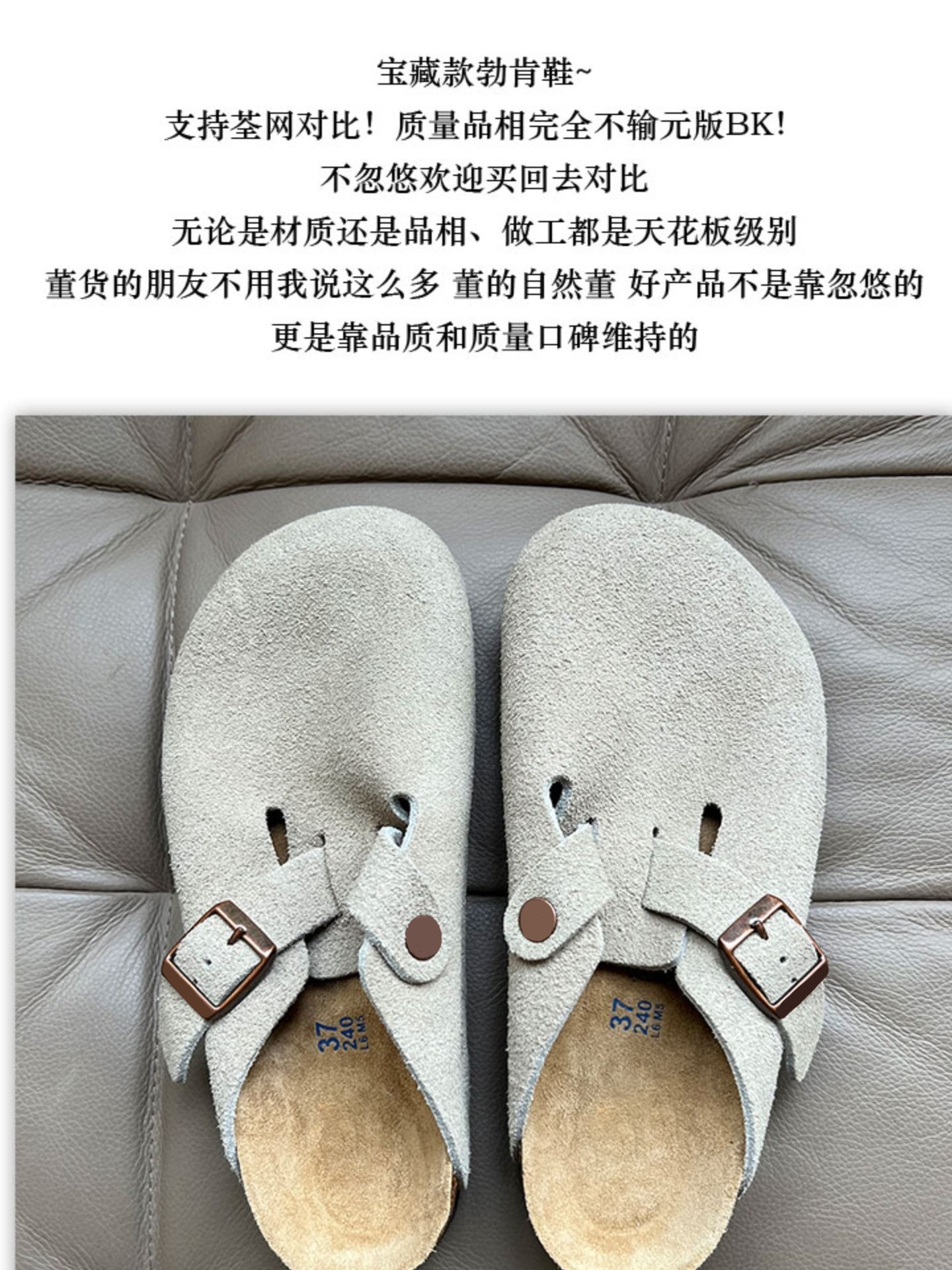 슈퍼 좋은 버전, Birkenneth 신발 전체 Cowhide 2025 남성과 여성의 가죽 두꺼운 바닥 게으른 코르크 Baotou 하프 슬리퍼스토어 가기