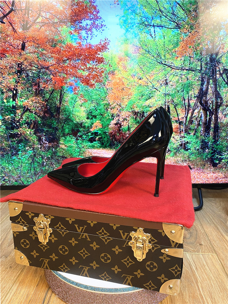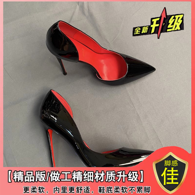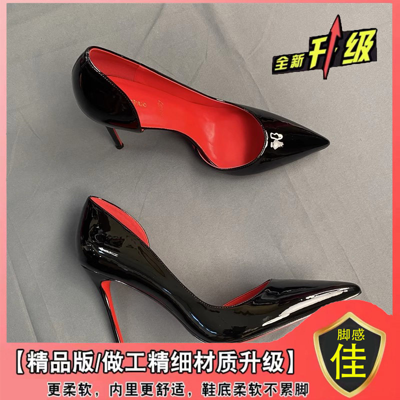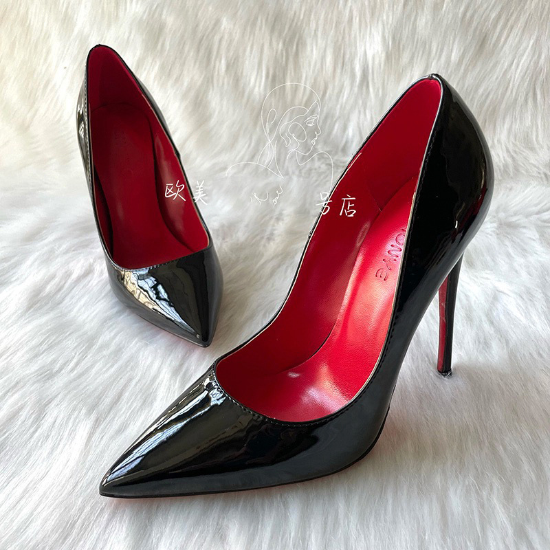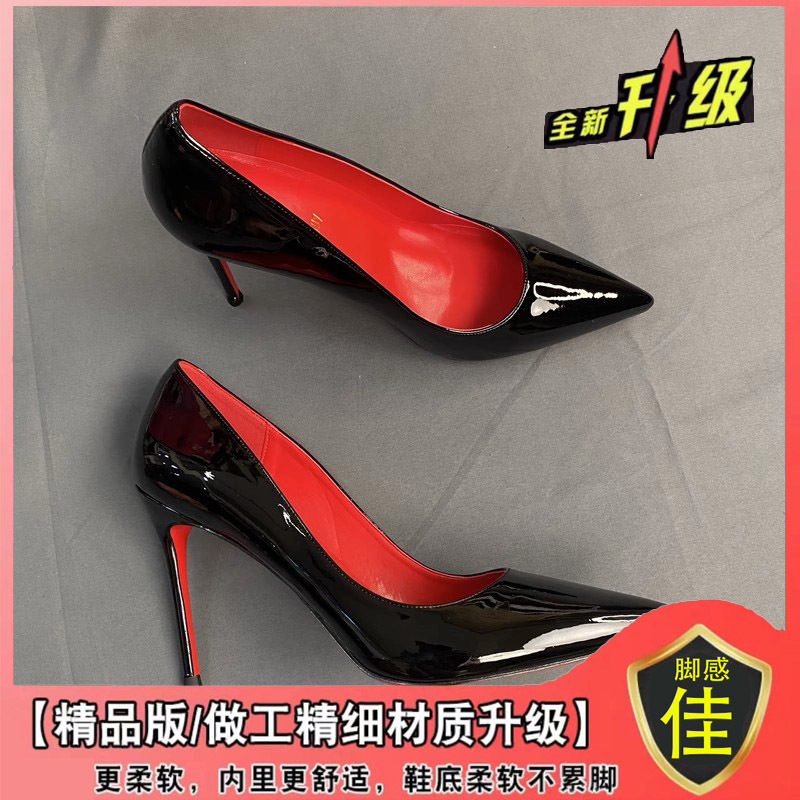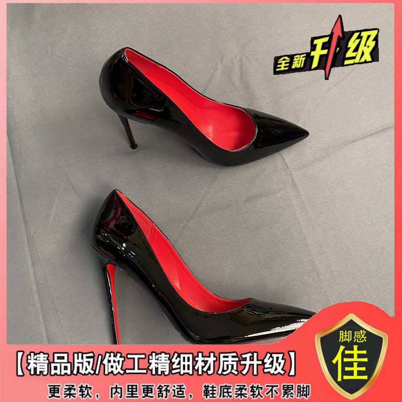 하이힐 침대 신발 여성용 스틸레토 힐 2023 새 가을 블랙 레드 솔 10cm 섹시한 포인팅 싱글 신발스토어 가기