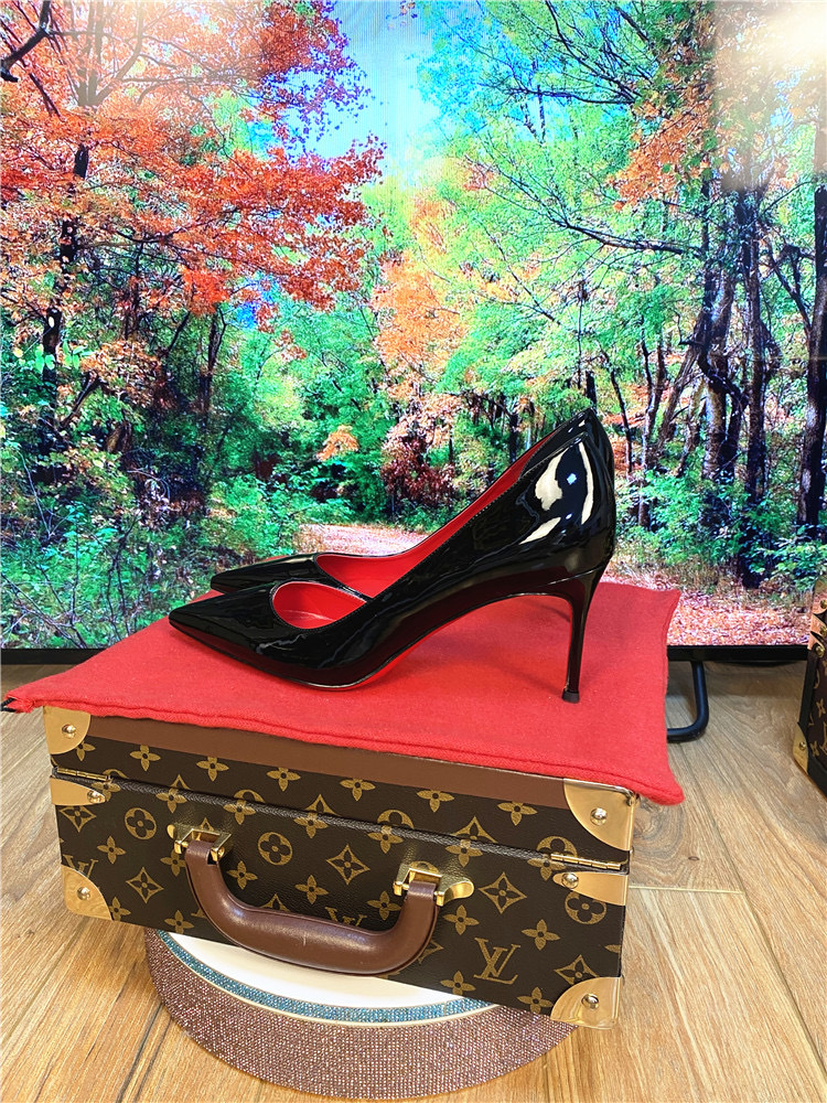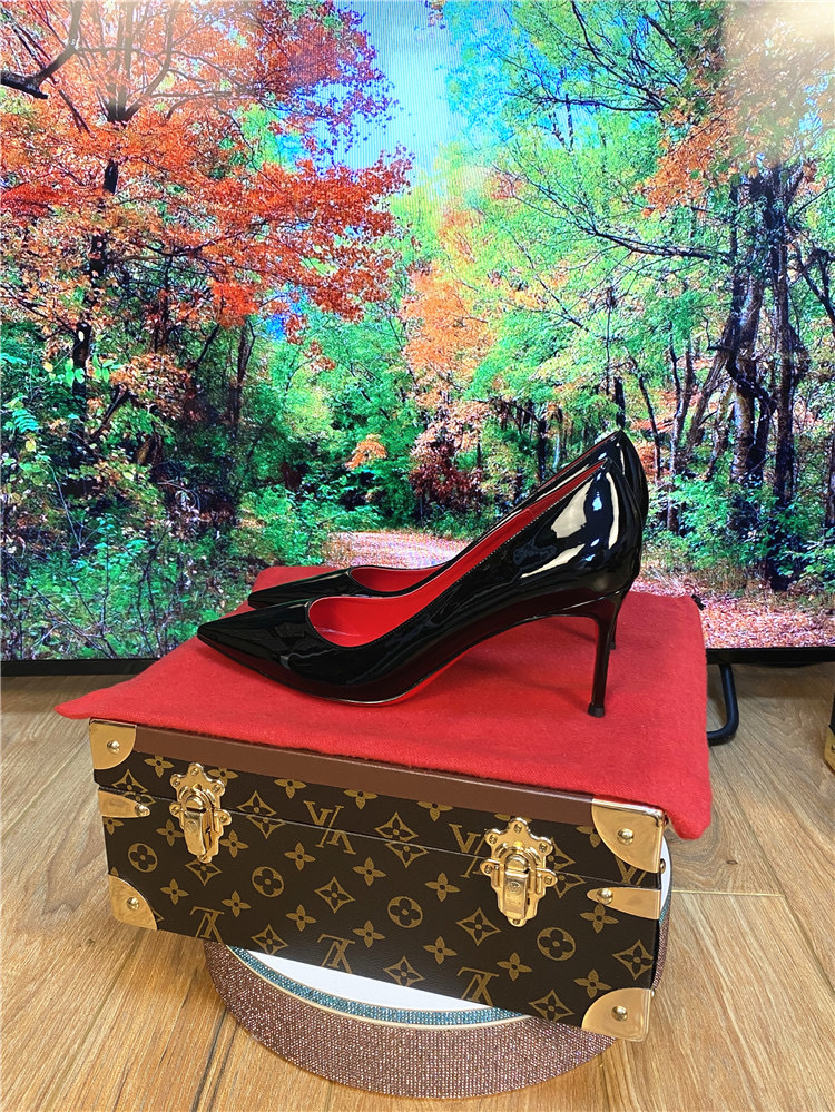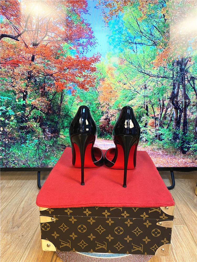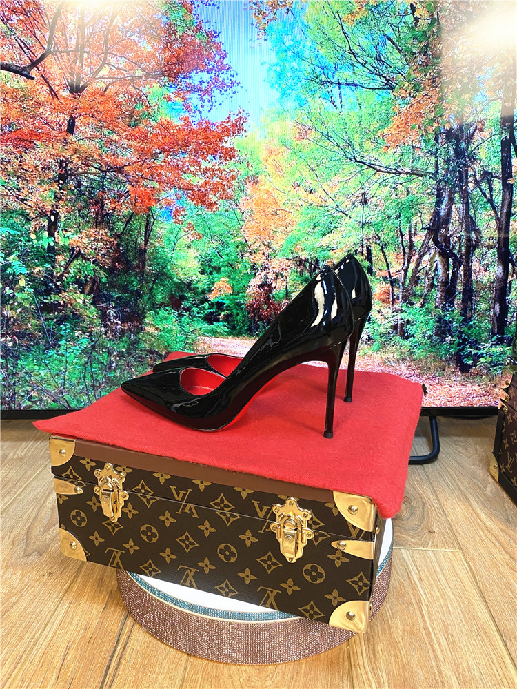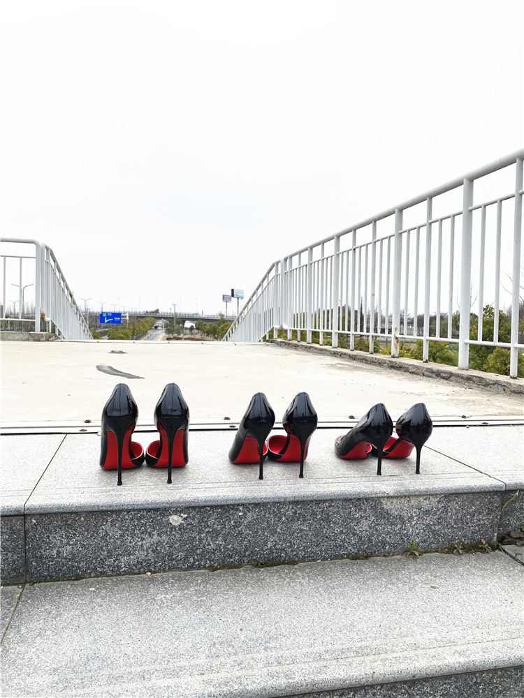 하이힐 침대 신발 여성용 스틸레토 힐 2023 새 가을 블랙 레드 솔 10cm 섹시한 포인팅 싱글 신발스토어 가기
