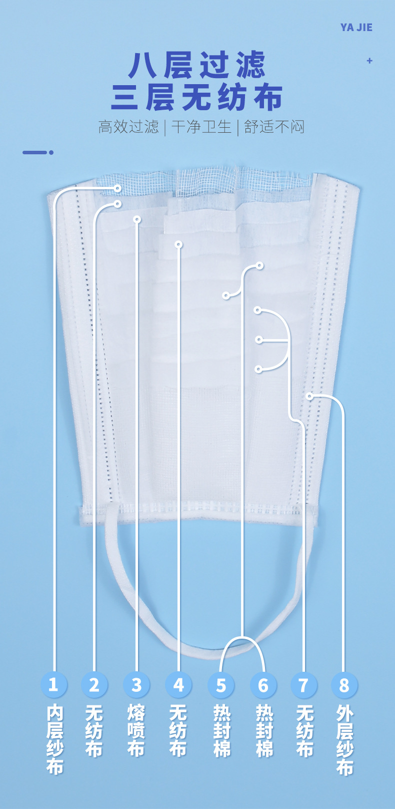 우아한 먼지 방지 마스크 8 층 보호 멜트 블로우 천 통기성 거즈 포함 멜트 블로운 천 마스크 작업장 장식 연마