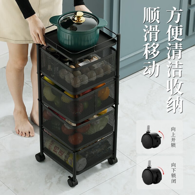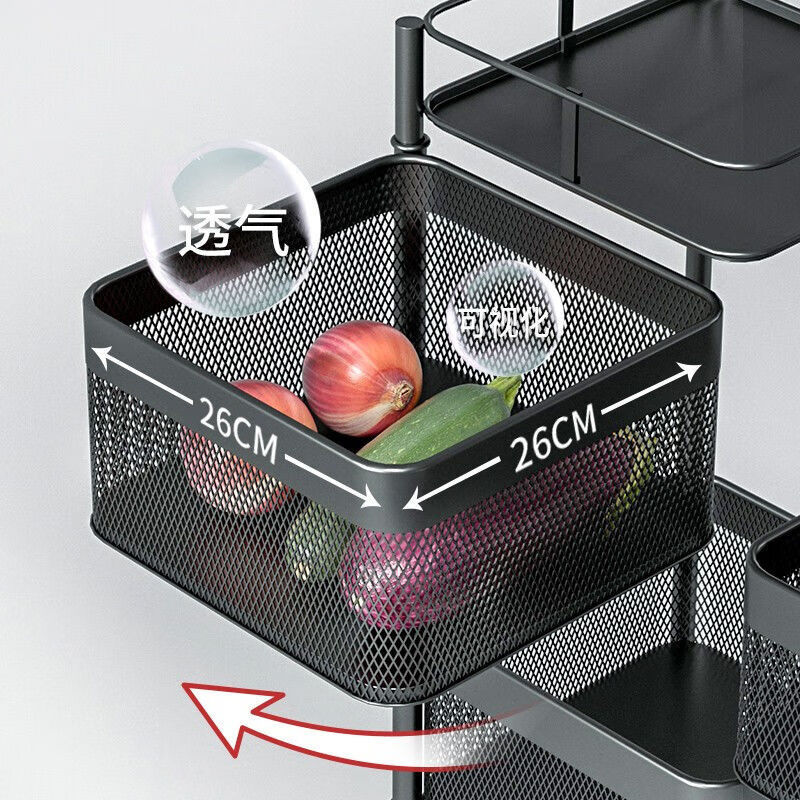회전 저장 랙 주방 야채 바닥 다층 야채 과일 바구니 가정용 다기능 이동식 저장 랙스토어 가기