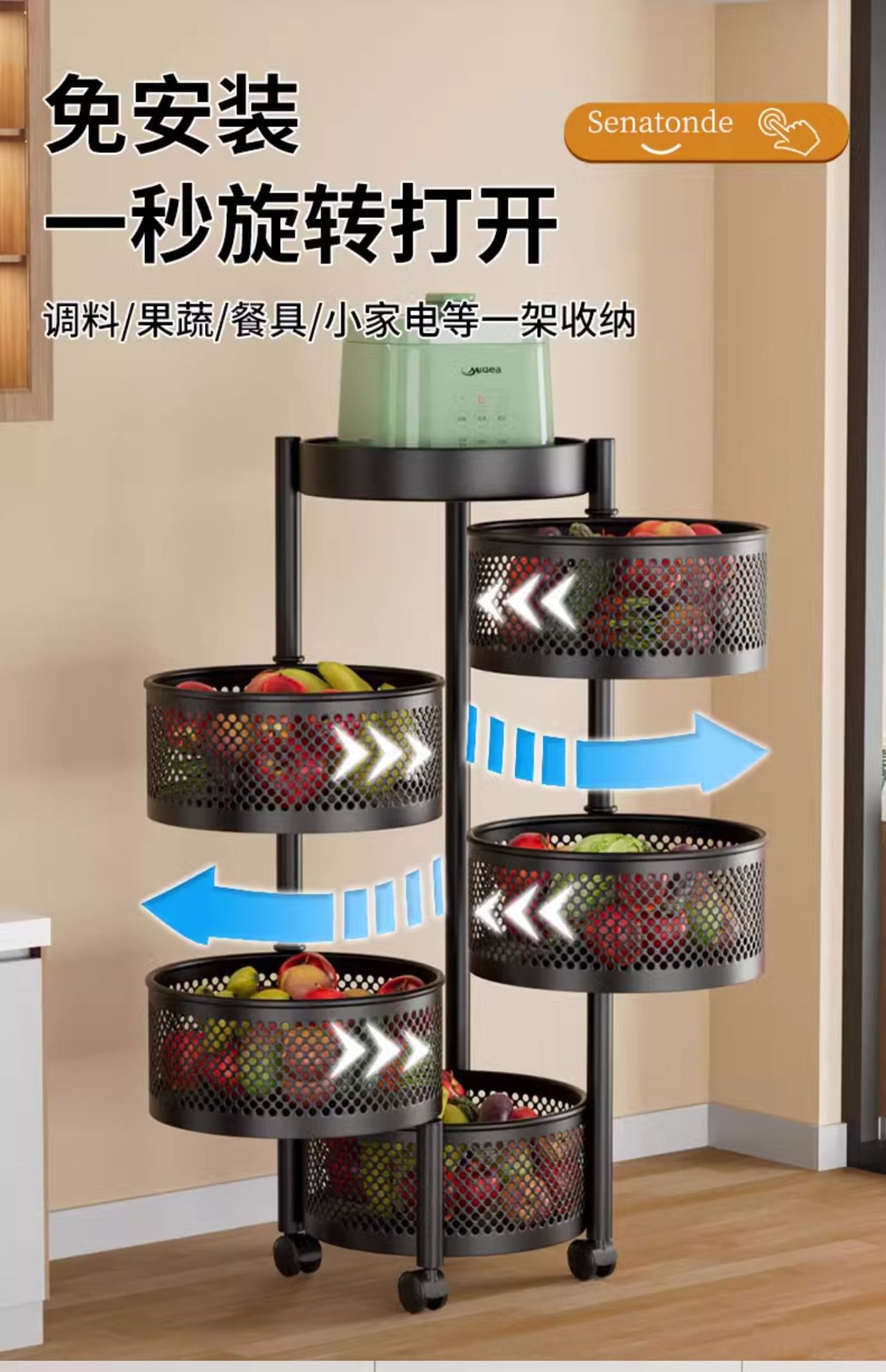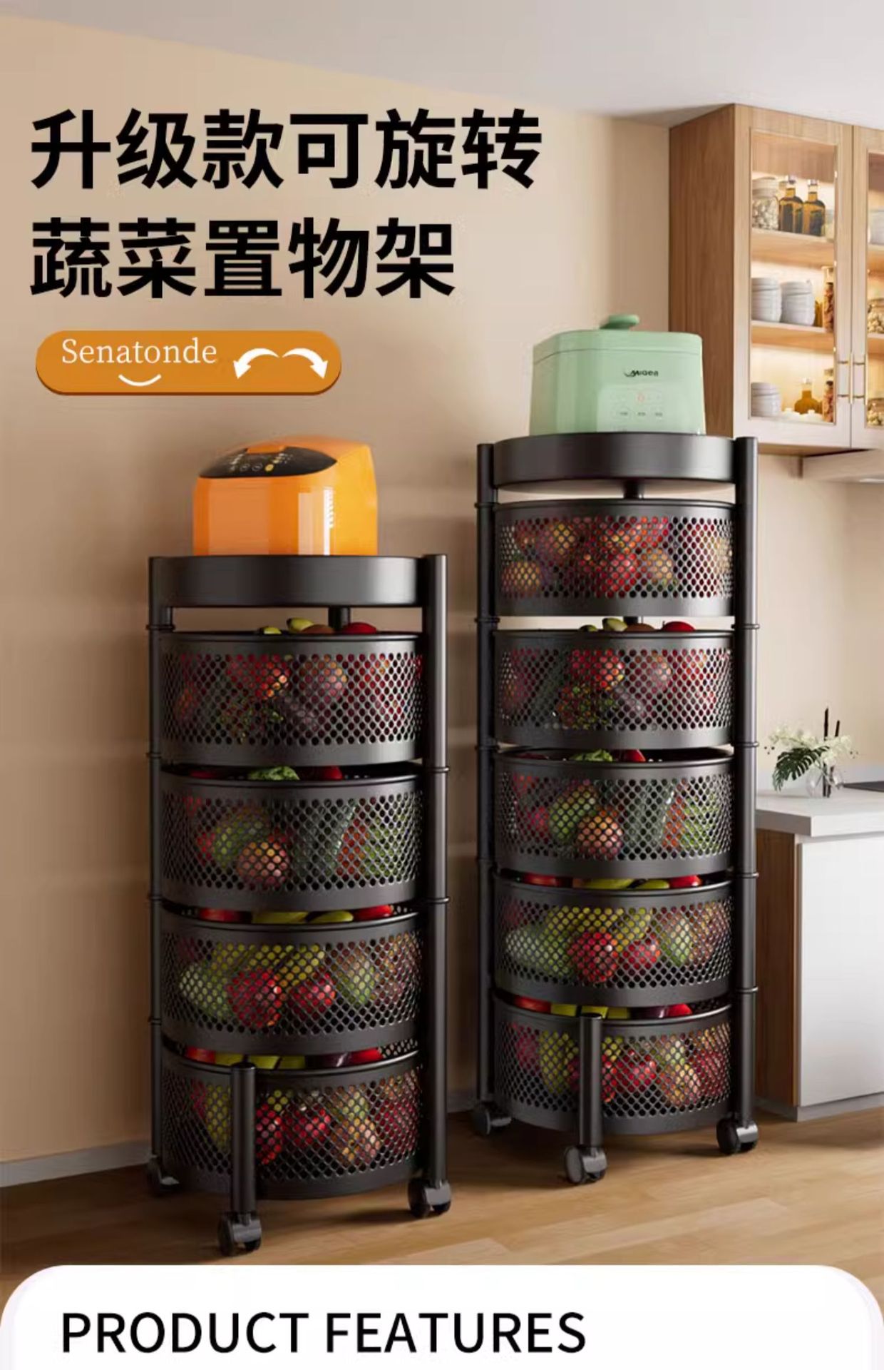 회전 저장 랙 주방 야채 바닥 다층 야채 과일 바구니 가정용 다기능 이동식 저장 랙