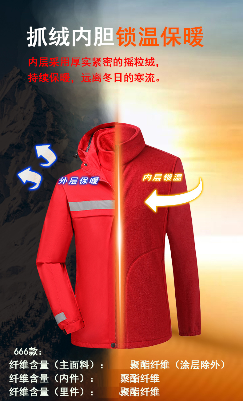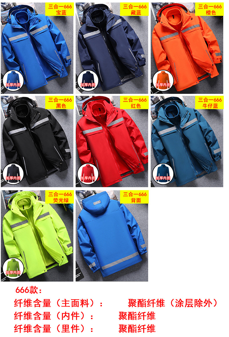 반사 스트립 3 대 1 재킷 야외 방수 방풍 여행 재킷 따뜻한 분리형 재킷 남성과 여성