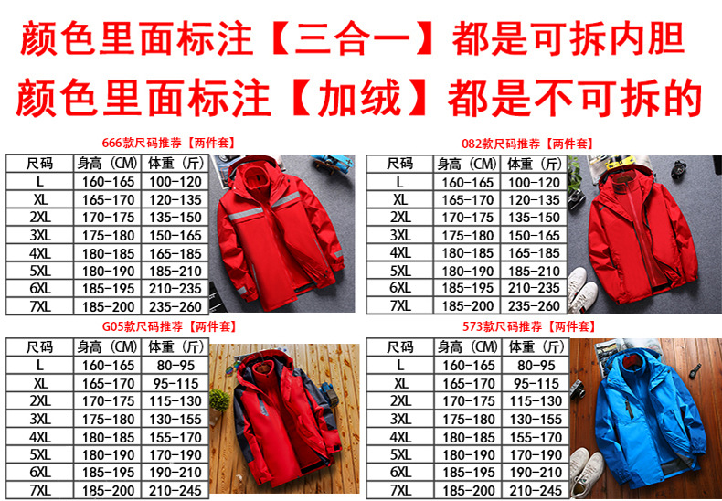 반사 스트립 3 대 1 재킷 야외 방수 방풍 여행 재킷 따뜻한 분리형 재킷 남성과 여성스토어 가기