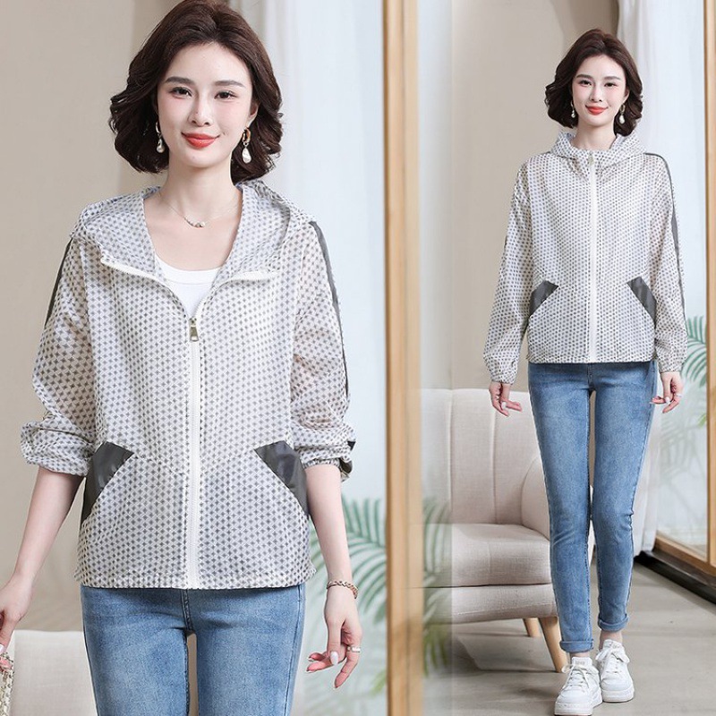 중년 및 노인 여성 여름 자외선 차단제 의류 느슨한 플러스 사이즈 2024 새로운 중년 어머니의 얇은 코트 통기성 선 스크린 의류