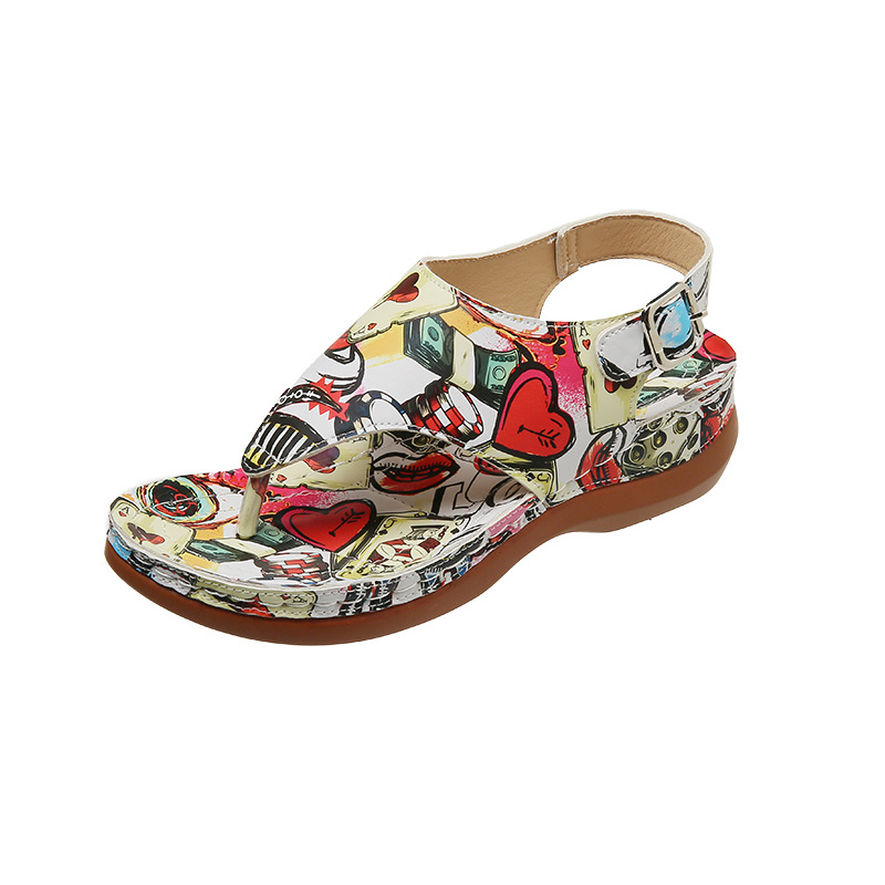 Amazon 2024 새로운 여름 스타일 원 버튼 샌들 헤링본 캐주얼 대형 웨지 힐 플립 플롭 패션 여성 샌들