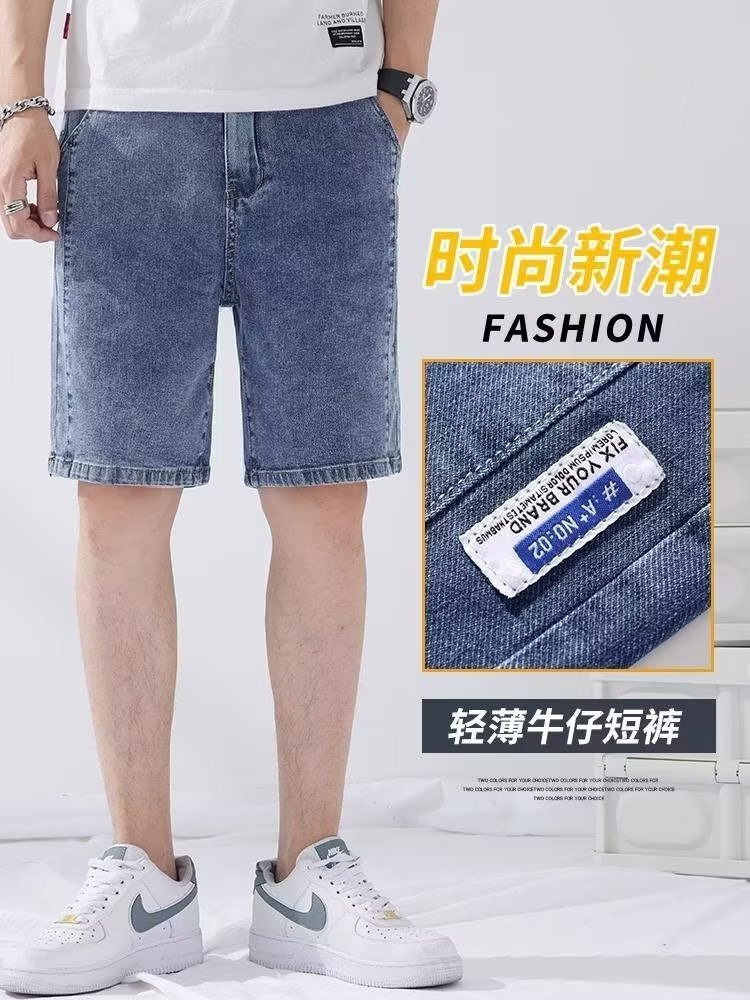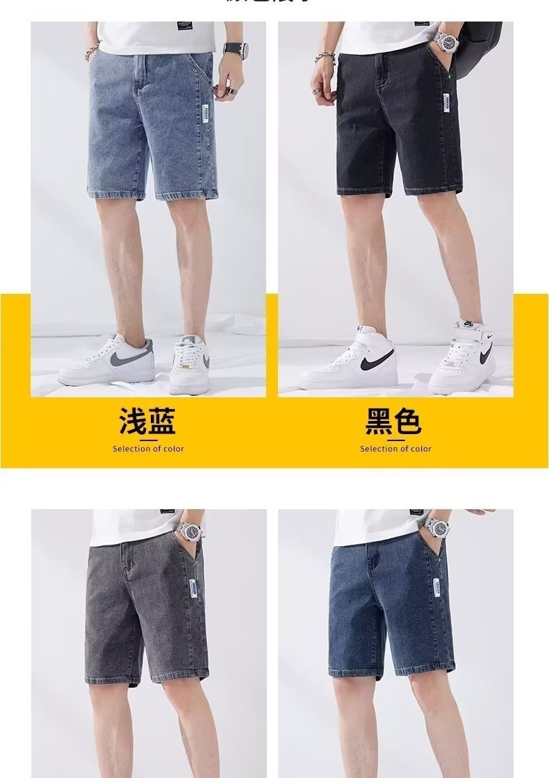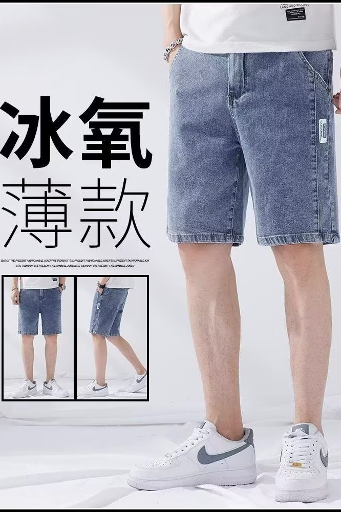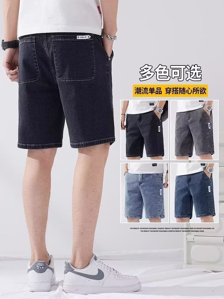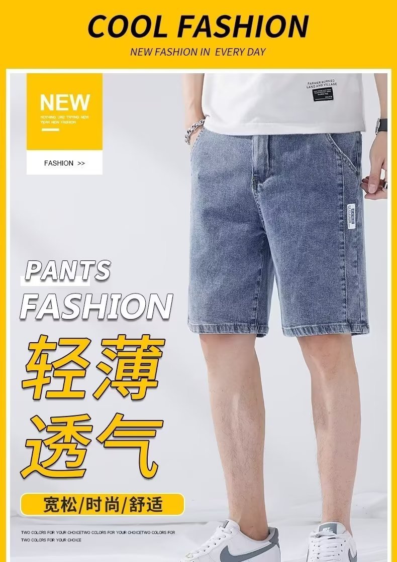 데님 5 점 바지 남자 여름 얇은 느슨한 스트레이트 캐주얼 반바지 한국 스타일 유행 올매치 5 점 바지스토어 가기