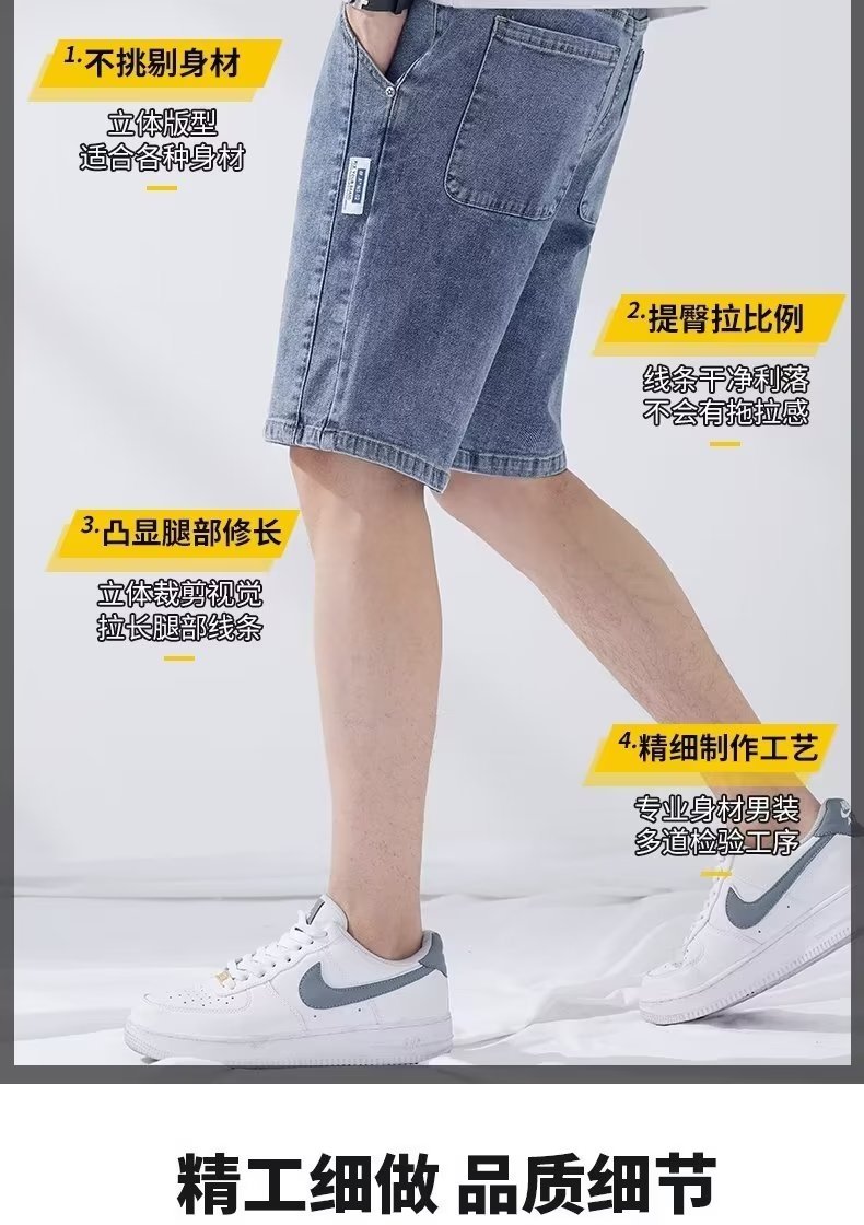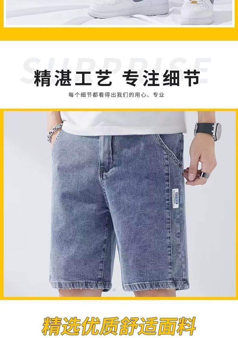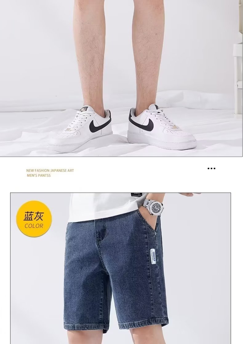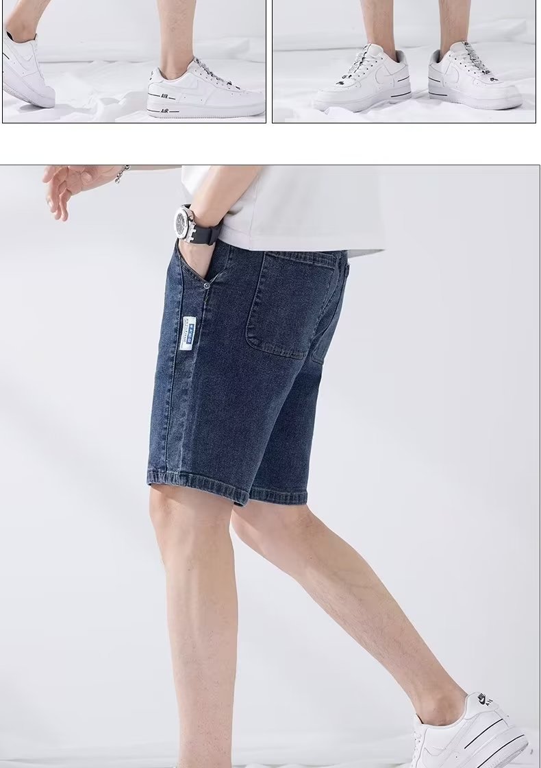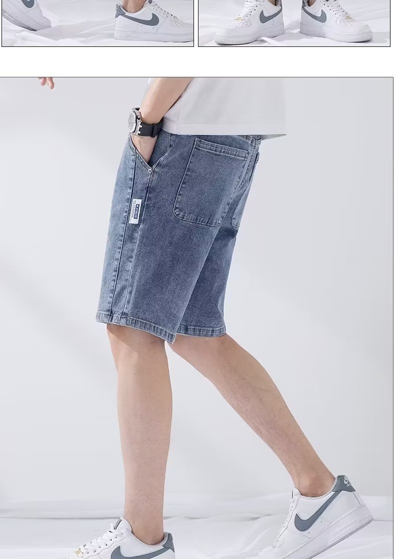 데님 5 점 바지 남자 여름 얇은 느슨한 스트레이트 캐주얼 반바지 한국 스타일 유행 올매치 5 점 바지스토어 가기