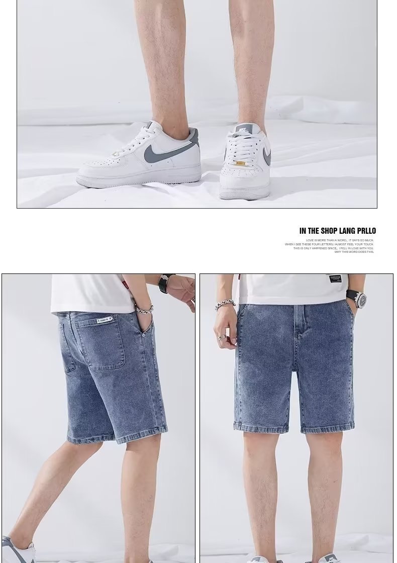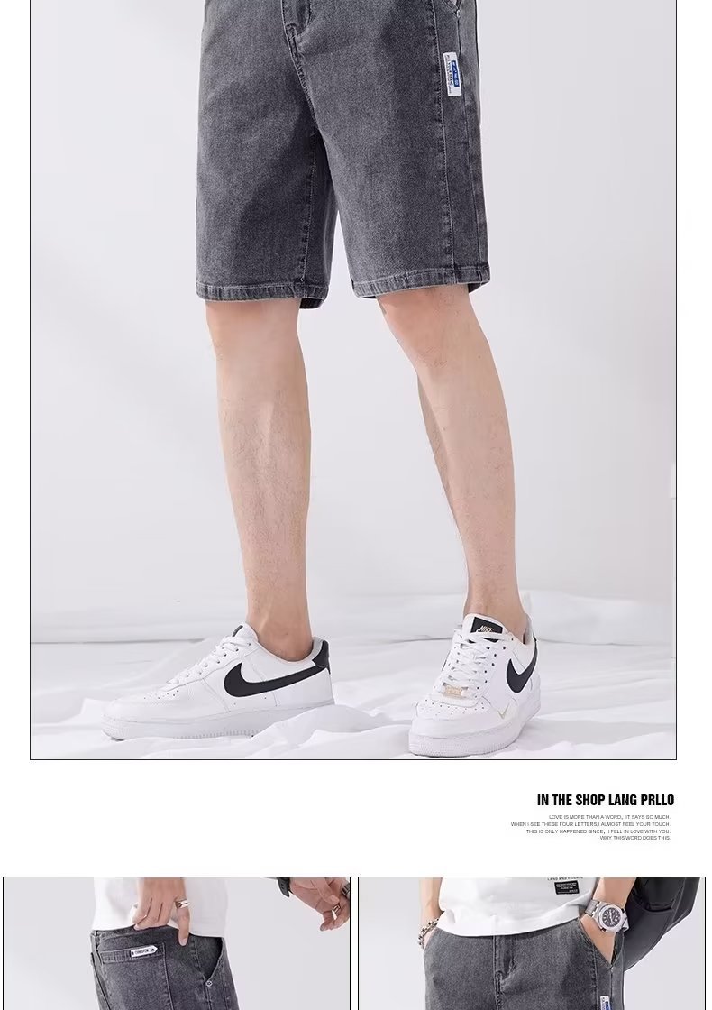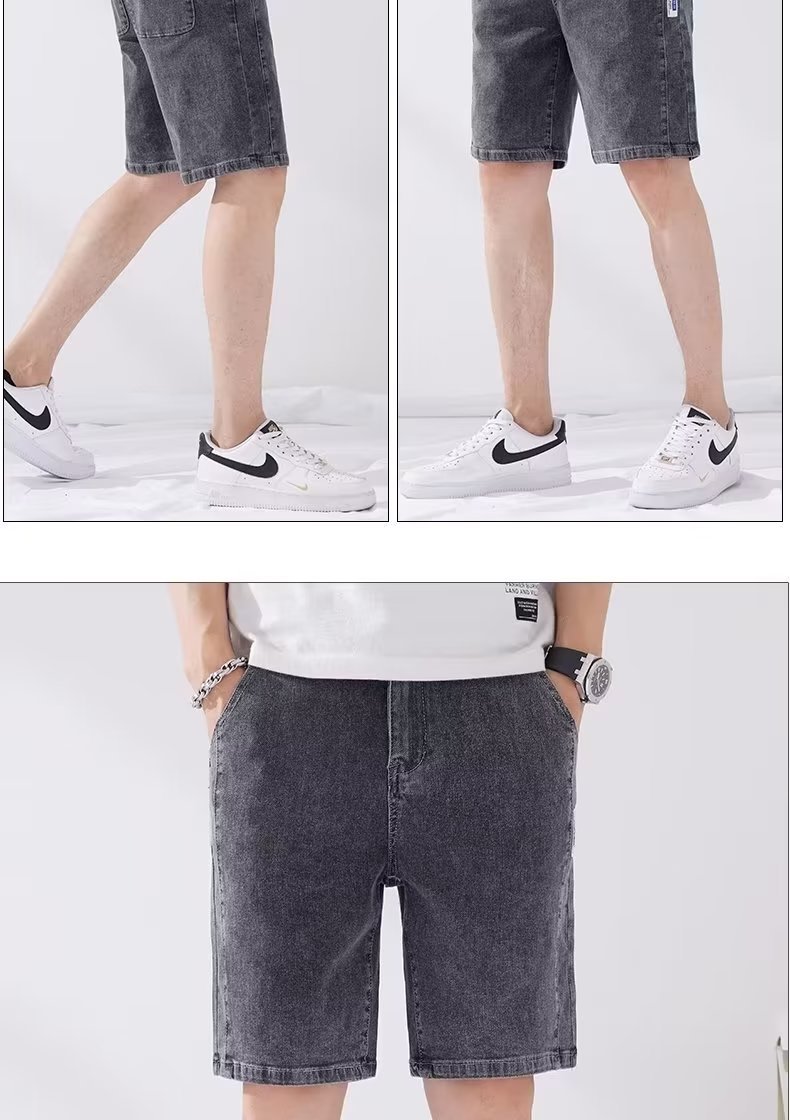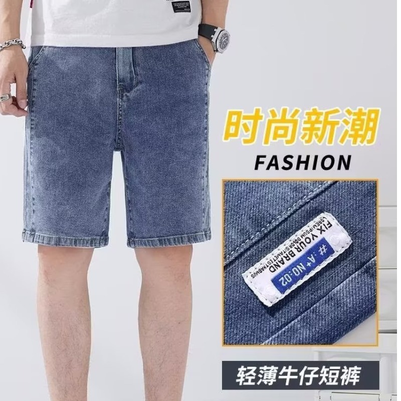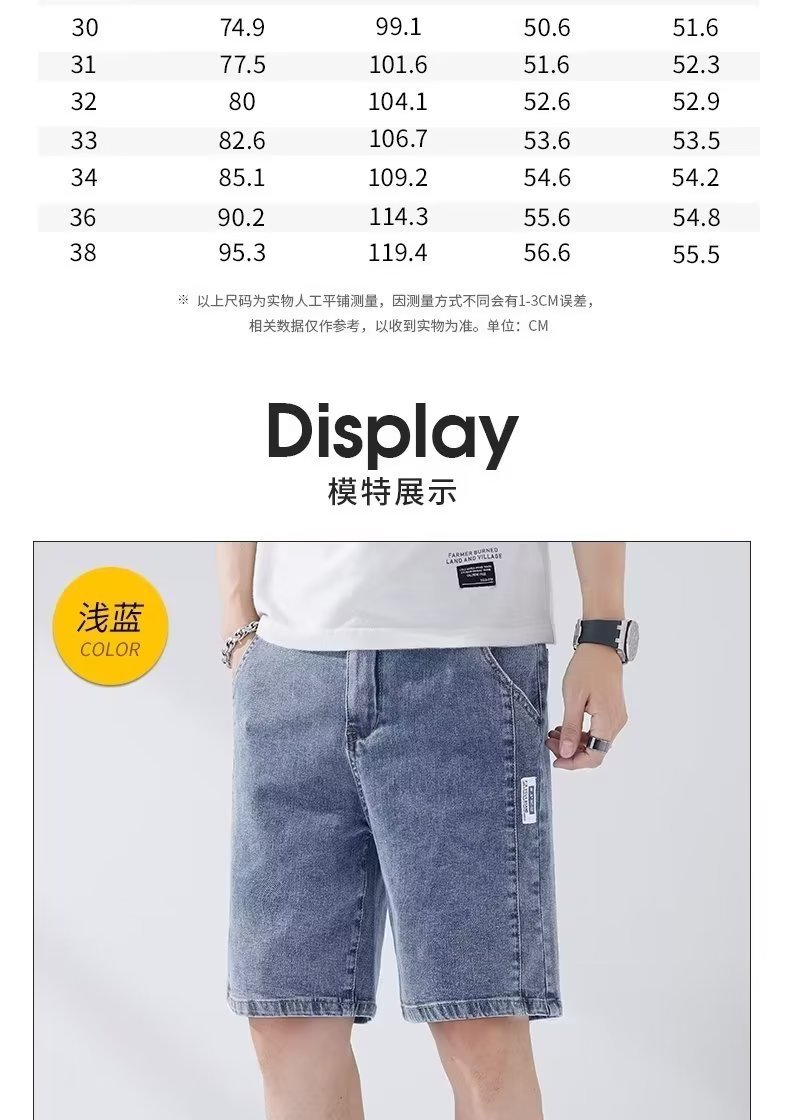 데님 5 점 바지 남자 여름 얇은 느슨한 스트레이트 캐주얼 반바지 한국 스타일 유행 올매치 5 점 바지스토어 가기