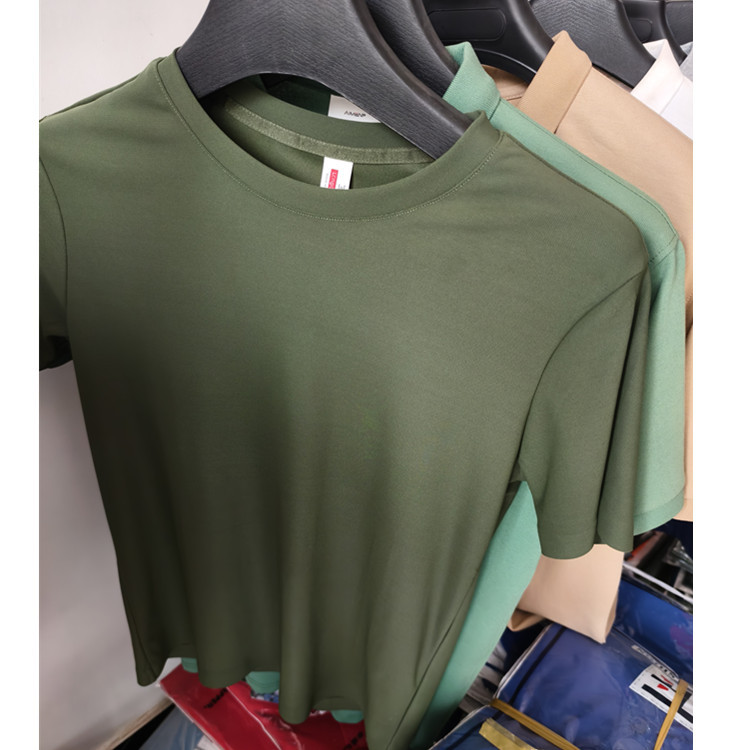 남성용 라운드 넥 군용 녹색 이음매없는 얼음 실크 티셔츠 반팔 여름 얇은 통기성 스포츠 속건 탑 파티 프린트스토어 가기